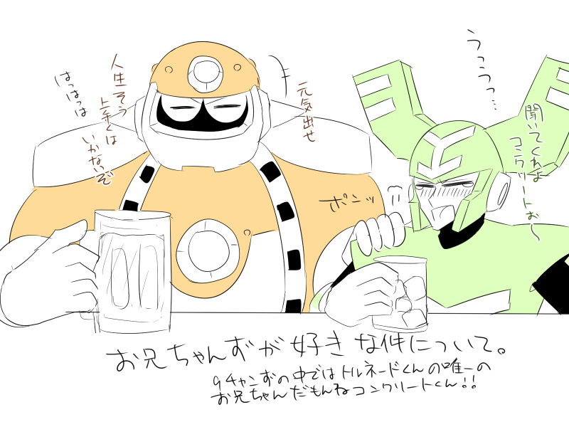 こういうのが好き!!!!!!!!9チャンずの長男コンクリートくんは包容力あるというかもはやパパ…私は彼のことをパパと呼んでいます…パパだよ…とるねどくんの相談相手になってあげてたりとかしてたらいいなぁ~~~頼れるパパ…にっこり…