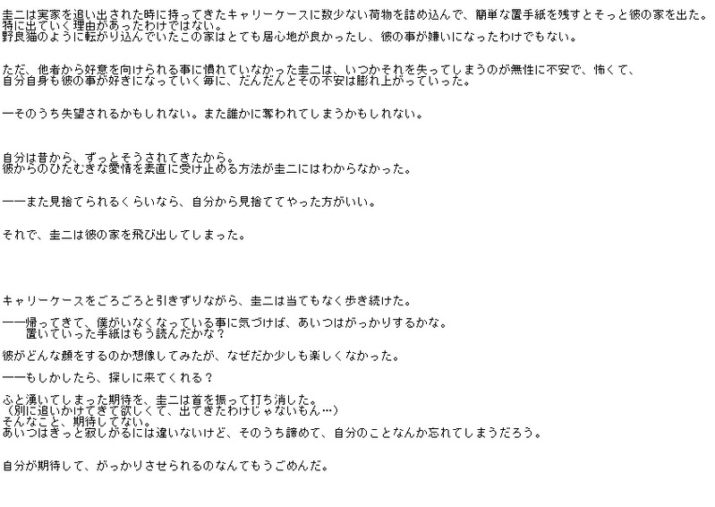 昭和の失恋系のフォークソングなどを聴きながら書いた。