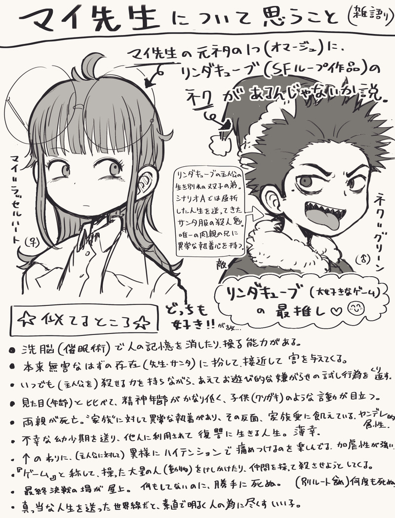 yorutama☆quiet followDOODLEマイ先生について思うこと巻戻士もリンダキューブも、マイ先生も、ネクも、どっちも推しで性癖だからこそ…語らせてくれ。 #マイ先生 ##巻戻士 Tap to full screen (size:1600x2100).Repost is prohibited Let's send reactions! freqpopularsnackothersPayment processing Replies from the creator Follow creator you care about!☆quiet follow yorutamaDOODLEマイ先生について思うこと巻戻士もリンダキューブも、マイ先生も、ネクも、どっちも推しで性癖だからこそ…語らせてくれ。 yorutamaDONEメリークリスマス❤️去年↓https://poipiku.com/2996393/11200148.html yorutamaDOODLE前の続き(?)的なキンクロとか※チューしたりしてる❗️ 2 yorutamaPROGRESS12/19同人誌のワンカット描き中あともう少しで原稿の下書き完成しそうだけど、その残ったあと少しを描くのが大変…*関係無いけど、コロちゃお(雑誌)買ってしまった。アニメのクロノさんの資料…いいね。そしてアニメは結局いつやるんだ〜〜??(まだまだ先?) yorutamaSPOILER最新話(1月号)ネタバレ殴り書き大変なことになってきた…(動揺) 1087 yorutamaDOODLEブチギレながらキスするキンスケ*キンクロって、もしかしたら“こう”かもしれない…と急に思い立って勢いで描いてしまった。キス絵よくわからん_(:3 」∠)_ related works きくちゃんDOODLEサタン様犬好きかと思いきやロクサーンみたいなパターンもあるのでやっぱ人外思考なのかな~ ちゃづDONE描いたやつその1※茨あん、ジュンあん 17 ココノカSPOILER幻覚なので全くネタバレではないけど1072話の発言ネタ わたさくDOODLE 2watoyoDOODLE【朝のボールペン落書き】【日楠♀】【先天性女体化】日高先輩×男装後輩サキュバス家系楠ちゃん。海編。本当に気にしてるのは。 ちゃづDONE描いたやつその1※茨あん、ジュンあん 17 きくちゃんDOODLEサタン様犬好きかと思いきやロクサーンみたいなパターンもあるのでやっぱ人外思考なのかな~ nnnnnnoodderaDONE【腐向け】チャバが酔ってハ崎さんに甘えてる漫画。ハ崎さんがトイレに行くのを我慢していたりする。 4 べこDOODLEピンク色のバレンタインなヨウグズ🍫 recommended works くらげ★DONE #ポケモン一度アナログで描いたものをデジタルでリメイクしました。 tukikagematariPASTサムネにあるタグそのままです。当時フォロワさんがハマってたジャンルや仕事考慮して書いてみました。これ楽しいですよ〜絵柄というか塗り方変えてみたのは挑戦という名の遊び。※サイズ大きめ 7 kitamura_deneTRAINING31のハッピードール食べたい! かりんDOODLE拙宅カロスヒロインのイブ。大人っぽい服装を好む。胸は同い年の女の子と比べると大きめ。気分に応じて、ツインテールになったりポニーテールになったりします。 ばあちゃむDOODLETwitterリクエストやつ 三年DOODLEリーチ ぴよっこDOODLEシュウくん! ちくりんDONEHappy Halloween🎃 火燈弥紗💀🔥Skeb募集中DONEポッキーの日のサングリ(sansby)グリルビーさんの雄っぱいにポッキーを挟むように頼むサンズ