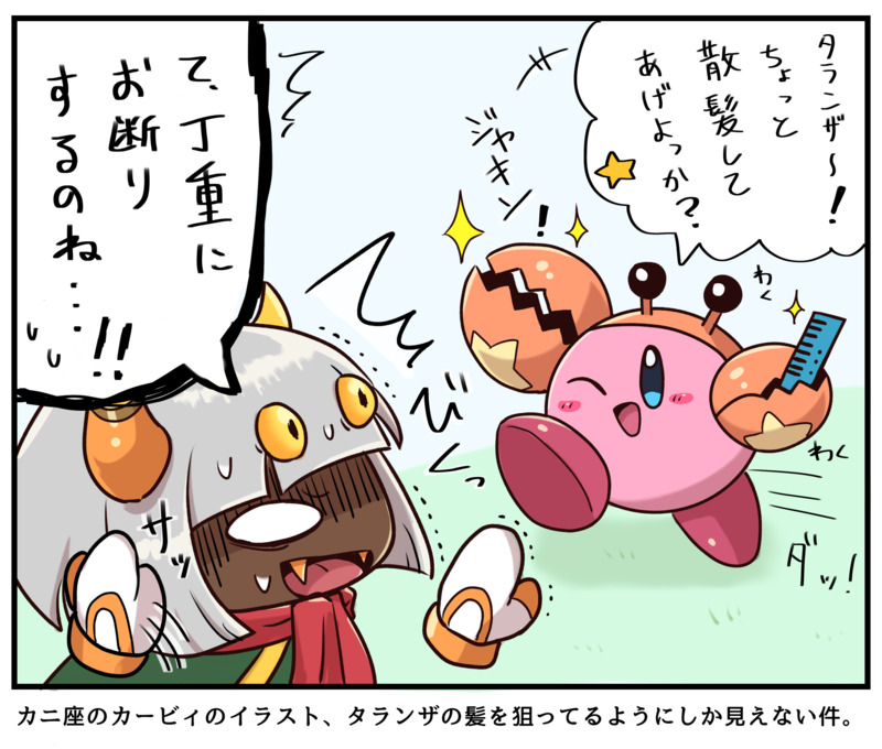 yorutama☆quiet followDONEホロスコープコレクション(グッズ)のカニ座のカービィとタランザのイラスト、よく見るとカービィが櫛を持ってるのに気付いた。カニ→ハサミ→散髪→髪があるキャラ→タランザ…って事!?タランザ、逃げて…!KIRBY ホロスコープ・コレクション https://www.bandai.co.jp/candy/products/2022/4549660820611000.html #星のカービィ Kirby of the Stars #タランザ Taranza ##カービィ Tap to full screen (size:2000x1700).Repost is prohibited Let's send reactions! freqpopularsnackothersPayment processing Replies from the creator Follow creator you care about!☆quiet follow yorutamaDONEChild's Dream*クロノっちとの“理想の学校生活”を楽しんでいたのは…きっと、本心なんだと思う。 yorutamaMAIKINGロリおにのマイクロ yorutamaDONEポルカちゃん(ホームランド) yorutamaDOODLE戯〈ギ〉にまみれた泥だらけの歌が、疑うことなき“生”〈セイ〉だった*クロノとキンスケで『或る街のギギ』前々から「合うな〜」と思って聴いてた。動画作る気力は無いけど、せめて絵だけでも…!ラストシーンが特に合うと思うので、聴いてほしい或る街のギギ feat 初音ミク/sasakure.UKhttps://youtu.be/z7DP5LxKqeM?si=Nop2O5pwQ8D-58Qh yorutamaDONEハイザキとAIクロノの“エゴ”【手描き巻戻士】↓完成動画❗️https://youtu.be/CYxzYWhqj8c?si=q4tG7mUfN0rTEHVQ*9月中ずっと作ってた動画が完成しました❗️🎉(9/30)特にハイザキ君が好きな人は、是非見てください❗️✨ 25 yorutamaDOODLEキンスケ&クロノ服の色はわからん! related works せろえーだぞっ(旧)DOODLEカービィまとめ(さっきから投稿しすぎなのは気にしない)カービィたちをシャーペンのみで描いたらくがきだお初描きキャラはグーイ、ハイネス、タランザ、マルクやでちなみに遊んだことあるカービィは(遊んだ順に)ロボボ→Wii→トリデラ→USDX→バトデラ→スタアラ3DSミニゲーZは全てやりましたがいつ頃からやり始めたか忘れた追記 毛糸+もスタアラの後に遊びました 15 yorutamaDOODLEタランザくんの泣き顔、定期的に描きたくなる yorutamaDONEタランザとバンワドくんタランザがバンワド君と仲良しになったら、もう……エモエモのエモ。 yorutamaDONE角川つばさ文庫のカービィ小説『結成!カービィハンターズZの巻』の感想(?)タランザの事しか書いてない。 yorutamaDOODLE女装させられるタランザくん最初メイド服着せるつもりだったのに、ただのゴスロリ(?)になった。かわいいのでなんでも似合っちゃうのね。多分なんかの罰ゲームか何か。 yorutamaDONEFLOWERカービィとタランザ30周年の花カービィを最初に見た時は驚いたけど、多分タランザが付けてくれたんだろうな〜と妄想。 2 yorutamaDOODLE擬人化タランザくん擬人化は他人の描いたの見るのは好きだけど、自分はセンスが無さすぎるのであんまり描かない。そもそも人間描くの苦手(原型の方が数十倍早く描ける)でも色々と独自設定を考えるのは好き〜 inui_sousakuDOODLE擬ンザ となりDONEアーッタランザすき… recommended works 桃色うさぎDOODLE #チコリータ #ポケモン 4 ゴッゴッゲッゴッゲッゴッゲッDOODLEボボ チェラテDOODLE2019010180349 実況動画を見てるとほんと可愛いし綺麗に見えるんですよねグレイシアさんとリーフィアも好きです @ななせDONEmake a wish 2 liria_orangeTRAINING自分の塗りバリエーションを増やす練習 yaminoebiDONEにぎやかおばけ Mr.KPROGRESSニンフィアと女トレーナーです 平岩真砂DOODLEアラン君とマノンちゃん 2 シラフジMOURNING過去絵晒してポイ数稼ごうっていう。キバナ、かわいい。 8