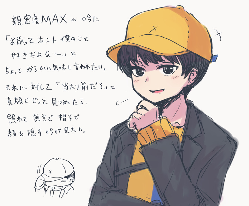 yorutama☆quiet followDOODLEカリギュラ2の最推しは能登吟くんです。吟……………一生愛す。 #カリギュラ2 caligula2 #能登吟 notoGinyin ##カリギュラ Tap to full screen (size:1934x1600).Repost is prohibited Let's send reactions! freqpopularsnackothersPayment processing Replies from the creator Follow creator you care about!☆quiet follow yorutamaDONEChild's Dream*クロノっちとの“理想の学校生活”を楽しんでいたのは…きっと、本心なんだと思う。 yorutamaMAIKINGロリおにのマイクロ yorutamaDONEポルカちゃん(ホームランド) yorutamaDOODLE戯〈ギ〉にまみれた泥だらけの歌が、疑うことなき“生”〈セイ〉だった*クロノとキンスケで『或る街のギギ』前々から「合うな〜」と思って聴いてた。動画作る気力は無いけど、せめて絵だけでも…!ラストシーンが特に合うと思うので、聴いてほしい或る街のギギ feat 初音ミク/sasakure.UKhttps://youtu.be/z7DP5LxKqeM?si=Nop2O5pwQ8D-58Qh yorutamaDONEハイザキとAIクロノの“エゴ”【手描き巻戻士】↓完成動画❗️https://youtu.be/CYxzYWhqj8c?si=q4tG7mUfN0rTEHVQ*9月中ずっと作ってた動画が完成しました❗️🎉(9/30)特にハイザキ君が好きな人は、是非見てください❗️✨ 25 yorutamaDOODLEキンスケ&クロノ服の色はわからん! related works yorutamaDOODLE部長とボチとボチかわいすぎる。部長の手持ちになってくれ!(部長もワンコ系で寂しがりなので相性良い)…これは吟に心配される。 茴香樹SPOILER学園祭ネタ。部長は多分ノトギンもこういうの苦手っていうの頭から抜けてる。 2 yorutamaDOODLEうちの部長、メイド姿似合うんご 茴香樹CAN’T MAKE女主ぶっちょの蹴りが描きたかった(力尽きた) 朧気(おぼろげ)DOODLE休息を兼ねて落書きしたドクトル先生。初書きなんですが難しくてびっくりした。 朧気(おぼろげ)DOODLEカリギュラ2の部長。いい感じの透明水彩ブラシが作れたので 龍斗(Ryuto)DOODLE夜中だからR15風味も描いていいんだよ主♂吟※下の絵の吟君のお帽子はちょっと浮いてる設定です。 hkb_kunSPOILERつまりはそういうことだよねっていう現実での吟主吟。クッションはブッチョが勝手に買ってきて置いてそう。 2 _girasole_oDOODLE※ネタバレ程でもないちょっと2章絡めたネタカリギュラ2、まだ2章クリアしたとこだけど楽しい主人公くんグラほぼ無表情だけど結構喋るし案外おちゃめなこと考えてるかもしれないと思うと面白いなって
