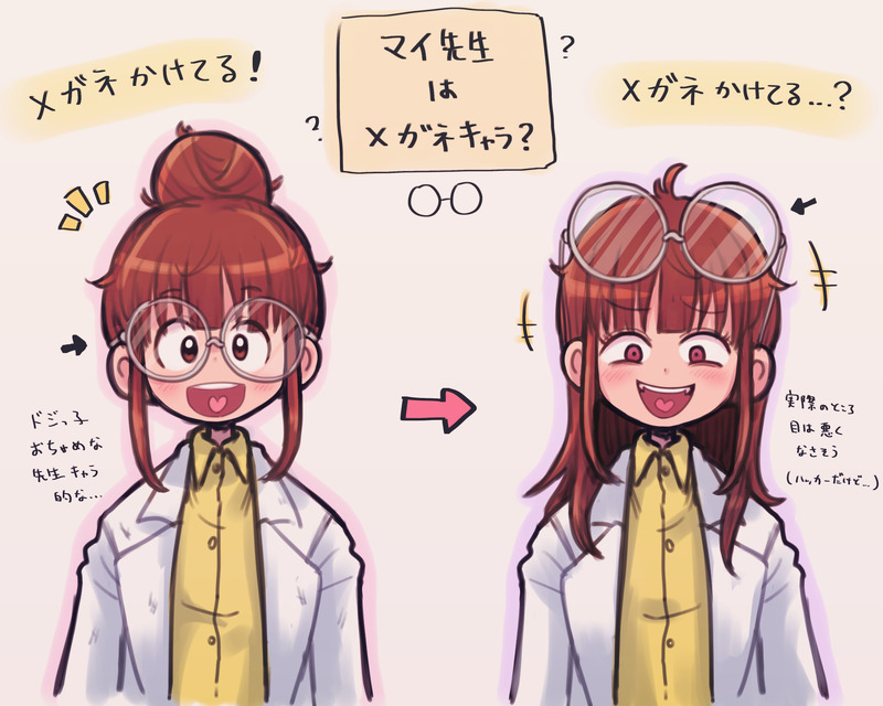 メガネキャラなのかどうかは分からないけど、でもメガネが無いマイ先生は、全くマイ先生に見えないんだよなぁ〜