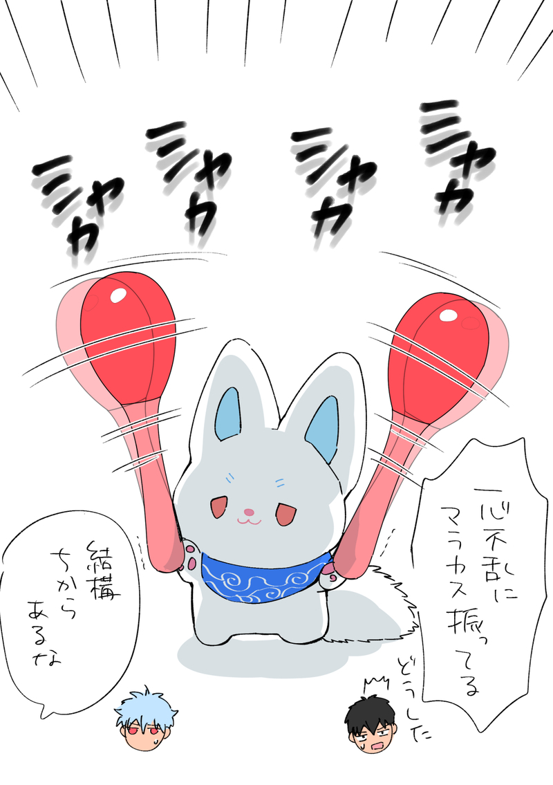 銀八先生グッズの音楽祭ネタでマラカスを気に入ったミニモフ絵2枚