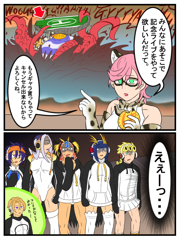 いんべだ☆quiet followDOODLE以前出したノトトラちゃんとアムカルちゃんのその後。これは呪詛極まってますわ。 Tap to full screen (size:600x800).Repost is prohibited いんべだDOODLEあと30分を切ってますが、今日は閏年で四年に一度の二月の肉の日という事で、何年かぶりに何一つ似てない著作権的にフリーな道を堂々と練り歩く事が出来そうなカルネさんをお出ししておこうと思います。こうやって数年ぶりにカラーでお絵かきしてみて改めて分かったのは、ホントに似てねぇな(驚愕)という事でした。あとクッソしんど(心の底からの感想) いんべだDONE新年明けましておめでとうございますの辰森河です。今年もよろしくお願いします。 2 いんべだDOODLE二年前位に描いてたイルブリ×森河の落書きがあったのを今更思い出したのでとりま出しておきました。レイチェル化森河って感じのヤツです。別にそこまで大したものでもないとは思いますが、異形化改変だったり若干焦げてたりするので一応NSFW設定しておきます。それはそうとレイチェル回は普通に切ない系のイイハナシダナーと思ってるのは自分だけ? 2 いんべだMAIKINGいい加減ヘッダ変えようと思って、大昔に描いていた超どうでもいい秒で考えた無個性オリキャラの落書きを切り取って色々試行錯誤したのですが、文字が切れて「ぱいぴく」になってしまい色々面倒くさくなったのでもういいやという事で元の絵もついでに出しておこうと思います。ていうか描きかけじゃねぇか 2 いんべだDONE新年あけましておめでとうございますの兎森河です。今年もよろしくお願いします。 いんべだDOODLEホントは十五夜に出そうとして出せなかったバニーガール的な感じの二代目ぜっとーんガールなにょた天城親方(右手前)と闘海丸タン(左後ろ)です。二枚目は一枚目のスーツのデザイン考えた時に描いてたデフォルメにょた丈影(左上)&百雲(右下)のラフで、三枚目は二代目じゃないぜっとーんガールなデフォルメにょた泡影(左上)とシンぜっとーんガールなデフォルメにょた川さんです。遅れたんなら色くらい塗れよ(正論) 3 recommended works BLYi5DOODLE本気で追いかけてくるジョゼと颯爽と逃げるいそぴ ちくわたろうPAST相当昔この頃はやる気あったなぁ 2 千三百一DONEメモマメイカ(39)「インポッシブル1」(40)「インポッシブル2」https://raiot.net/i/1563094819668 2 GYONIKUPROGRESS嘱託警察犬訓練士ア○ンと嘱託警察犬ヴィ○ール号と警察官ガ○リオ⑫※下書き用なので誤字、脱字多いです。設定もふんわりなのでおかしいと思います。ご注意ください 9 SAKURADOODLE初エルリ。エルヴィンカッコよかったなぁ…て。 鈴おやつ。DONE浜守一郎 はらずみDONEよくわからないけど拉致監禁 牧信 たよるDONEニキちゃんの口の形に悩みまくったので差分も貼ります。 3 犬と暮らしたことがないDOODLE「たまには髪型遊んでみてもいいんじゃないですか」とかなんとか⑦巻きくやしょてん特典のにゆ〜かんはちはやくんがあおいちゃんの髪セットしてあげた説あるでしょ……というらくがきのち〜とど
