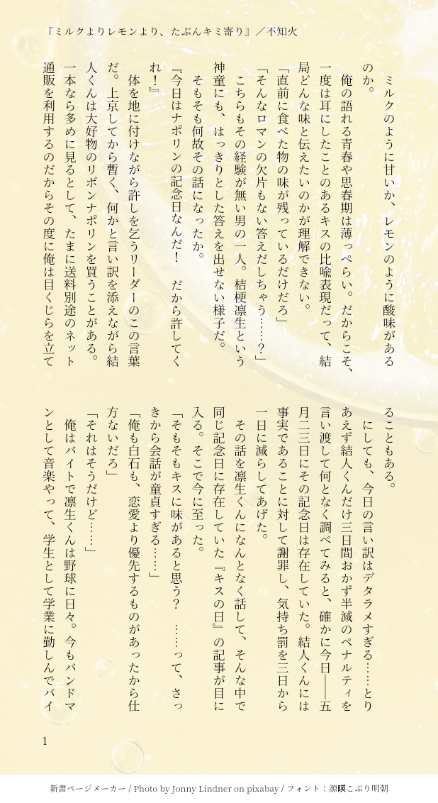 «りおばん『ミルクよりレモンより、たぶんキミ寄り』»