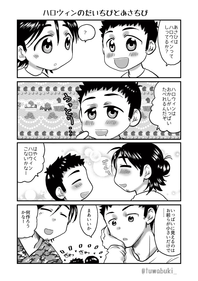 石蕗☆quiet followDONE旭大ハロウィン四コマ。だいちびとあさちびはうちの本を見ていないとなんのこっちゃという不親切仕様。のるちゃんぐらいの小ささの不思議な生き物です。 #旭大 universityOfTheAscension #東峰旭 dongfengxu #澤村大地 sawamuraEarth Tap to full screen (size:1820x2580).Repost is prohibited Let's send reactions! freqpopularsnackothersPayment processing Replies from the creator Follow creator you care about!☆quiet follow 石蕗DONE旭さんがご飯を作って大地さんに美味しく食べてもらう大人になった二人の四コマです。 2 石蕗DONE旭さんと大地さんのイチャイチャ四コマ。 2 石蕗DONE2020年描き納め&大地さんおたおめ!いつもちびっこいのばかり描いてて頭身高い顔は久しぶりに描いた気がする。 石蕗DONEお互いの生活が落ち着いた頃、東京の旭さんの所に遊びに来た大地さんと大人を感じさせる旭さんの四コマ。 石蕗DONE旭大ハロウィン四コマ。だいちびとあさちびはうちの本を見ていないとなんのこっちゃという不親切仕様。のるちゃんぐらいの小ささの不思議な生き物です。 石蕗DONE原稿合宿で描き上げた旭さんと大地さんのイチャイチャ四コマ。既に一線超えてるけどまだまだ初々しい旭さん。 related works 石蕗DONE旭さんと大地さんのイチャイチャ四コマ。 2 石蕗DONE3/13は旭大の日です。しょんぼり旭さんと好きな人を悪く言われておこな大地さん。 石蕗DONE恵方巻を食べる旭さんと大地さん。 あやせ ひかるDONE明日アップ予定のサームラさんアイビスで使ってたペンに近いものを探すところからだから大変 石蕗PASTかなり前に描いた四コマ。この頃から大地さんが色々気にしているのがデフォになってたらしい。あいぽんで指で描いたやつ( ˊ̱˂˃ˋ̱ ) 石蕗PASTなかなか前に描いた旭大にゃんこ。 石蕗DONEバレンタインに間に合わなかった旭大四コマ。大地さんにツンが無いのは離れて暮らしているので甘えたが増してるからです。 石蕗PASTいつかの冬コミペーパーのオマケに色塗ったもの。 石蕗PROGRESS次の旭大本の暫定表紙。内容は最近描いた四コマと描き下ろしのショート2、3本くらいのほのぼのした感じになります。ちょいアニメっぽい塗り方かなと思う recommended works 和麩wafuDOODLEハイステレポ(?)やらなんやら…寒がり松川をおすすめしてる… 10 UmioDONE最新巻みた 冬石優姫那PAST『チーム烏野始動』 shinaki🍙🍊DONE年初 2019亥年🐗 石蕗PASTいつかの冬コミペーパーのオマケに色塗ったもの。 石蕗DONE一緒にお風呂に入っているのに全くエロくない旭大四コマ。 おとうふPASTスガさん〜〜 によPROGRESS例のアニメパロを…🤚 2 あやせ ひかるMOURNING元絵はこんな感じです