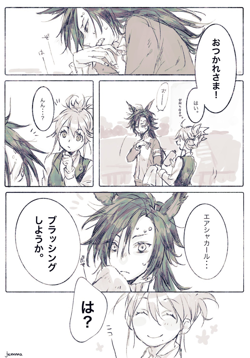 jemma ウマ娘/エアシャカール+トレーナー♀(顔あり)Twitterに投げたやつとか練習、落書きなど。⚠️無断転載、二次利用禁止です ☆quiet follow Yell with Emoji POIPOI 15