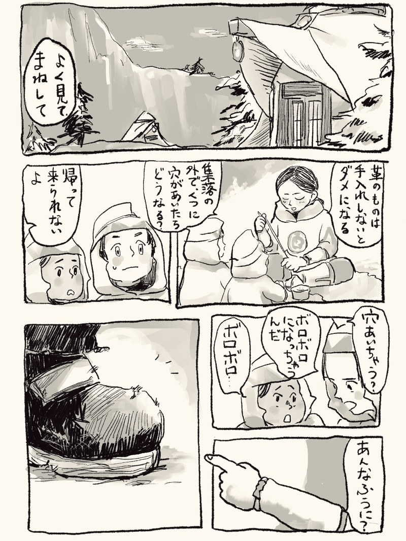 シンジュに拾われてしばらく経った頃のノボリさんと集落の子どものやりとりまんが
