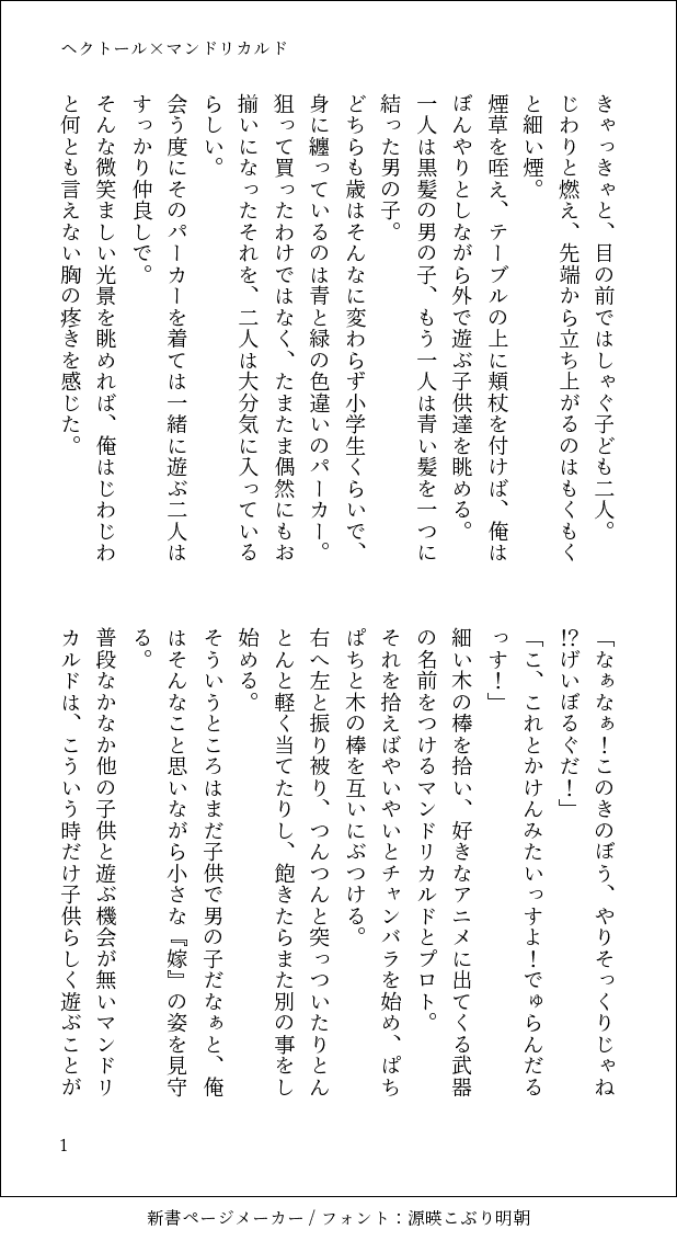 okulave123☆quiet followDONEヘクおじとヘクおじの『お嫁さん』してるマンドリカルドくんのヘクマン。https://twitter.com/okulave123/status/1251418100454440960?s=21これの小話的なあれ。ショタプニキとキャスニキがいるよ。何でも許せる方はお読みください。 #ヘクマン heckmann. show all(+5 images) Tap to full screen (size:618x1132).Repost is prohibited Let's send reactions! freqpopularsnackothersPayment processing Replies from the creator Follow creator you care about!☆quiet follow okulave123DONE💀の使い魔になった🦁氏のレオイデ②定期的に情緒不安定になる💀と獣化しても変わらない🦁。①はツリーのリンク参照。しんどい話になっています、何でも許せる方はお読みください。 4 okulave123DONE結局自分で書いてしまった。💀の使い魔になった🦁のレオイデ①しんどい話になってます。何でも許せる方はお読みください。 3 okulave123DONE気持ちがハートになって出てくる両片思いのレオイデの話。 8 okulave123DONEてろっぷさんお誕生日おめでとうございます。ヘクマンとキャスプニがエッチしマンとプニがイチャイチャしてます、受け取ってください 4 okulave123DONE殺ってしまった💀と証拠隠滅する🦁のレオイデ 5 okulave123DONEこれはゴスマリの展開にも屈することなく意地でもくっつけようとするヲタクが書いたレオイデSS※ゴスマリネタバレ注意 9 related works ツバキ(版権用)DONEヘクマン、ラブラブしたい 湖/FGODOODLEヘクマンオメガバ……前回のネタの続きで発情期ってやつ。マンドリカルドくんがデロンデロンな顔してるだけこの状況で1,2ヶ月は経ってると私が喜ぶ。私が。 よだぽDONE現パロヘクマンと猫ちゃん。 いちまろMOURNING【敵ヘクマン】このままだとマくんの腕が擦れて痛そうなので体位を変えることにしました。よって1から描き直し!ゆえに供養!ちくびぜめとか入れたい 3 ss_hkmnshtTRAINING「3時間後にオジサンに抱かれるリカくん」が読みたくて死にそうだったのでヘクマン書いた このあとオジサンに処女食われるリカくんいやでもなんかコレジャナイ感あるのでやっぱどなたか読ませてください…ネタはフリーです… 4 httttttgmFUJOSHI SAW※ヘクマンゲイビで見て「すけべだなァ…」と思った体位 ss_hkmnshtTRAINING(ヘクマン)初体験でオジサンの大英雄が大英雄すぎて絶対裂ける…と思いながら臨んだら全然大丈夫どころかえらいことになっちゃった話マくんの霊基は大体オジサンでできてるようなものだからオジサンの大英雄が入らないわけがないし何なら誂えたようにぴったりハマるはずだよね!というネタ フリーです 4 chocoletpandaDONEヘクマン箱入り(物理) 湖/FGODOODLEヘクマンオメガバ。噛んでも意味はないのに。まだまだ判明しないヘクおじと、形だけでもヘクおじのものになりたいマンドリカルド