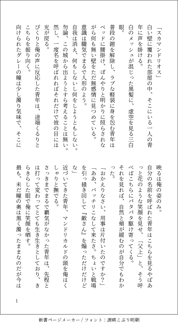 okulave123☆quiet followDONEマンに暗示かけて『親子ごっこ』している敵ヘクマン①あまりヘクおじが敵していないがいろいろ拗らせてる。続きます。何でも許せる方はお読みください。 #ヘクマン heckmann. show all(+5 images) Tap to full screen (size:618x1132).Repost is prohibited Let's send reactions! freqpopularsnackothersPayment processing Replies from the creator Follow creator you care about!☆quiet follow okulave123DONE💀の使い魔になった🦁氏のレオイデ②定期的に情緒不安定になる💀と獣化しても変わらない🦁。①はツリーのリンク参照。しんどい話になっています、何でも許せる方はお読みください。 4 okulave123DONE結局自分で書いてしまった。💀の使い魔になった🦁のレオイデ①しんどい話になってます。何でも許せる方はお読みください。 3 okulave123DONE気持ちがハートになって出てくる両片思いのレオイデの話。 8 okulave123DONEてろっぷさんお誕生日おめでとうございます。ヘクマンとキャスプニがエッチしマンとプニがイチャイチャしてます、受け取ってください 4 okulave123DONE殺ってしまった💀と証拠隠滅する🦁のレオイデ 5 okulave123DONEこれはゴスマリの展開にも屈することなく意地でもくっつけようとするヲタクが書いたレオイデSS※ゴスマリネタバレ注意 9 related works chocoletpandaDONEヘクマン箱入り(物理) ss_hkmnshtTRAINING「3時間後にオジサンに抱かれるリカくん」が読みたくて死にそうだったのでヘクマン書いた このあとオジサンに処女食われるリカくんいやでもなんかコレジャナイ感あるのでやっぱどなたか読ませてください…ネタはフリーです… 4 よだぽDONE現パロヘクマンと猫ちゃん。 湖/FGODOODLEヘクマンオメガバ。噛んでも意味はないのに。まだまだ判明しないヘクおじと、形だけでもヘクおじのものになりたいマンドリカルド httttttgmFUJOSHI SAW※ヘクマンゲイビで見て「すけべだなァ…」と思った体位 ss_hkmnshtTRAINING(ヘクマン)初体験でオジサンの大英雄が大英雄すぎて絶対裂ける…と思いながら臨んだら全然大丈夫どころかえらいことになっちゃった話マくんの霊基は大体オジサンでできてるようなものだからオジサンの大英雄が入らないわけがないし何なら誂えたようにぴったりハマるはずだよね!というネタ フリーです 4 ツバキ(版権用)DONEヘクマン、ラブラブしたい いちまろMOURNING【敵ヘクマン】このままだとマくんの腕が擦れて痛そうなので体位を変えることにしました。よって1から描き直し!ゆえに供養!ちくびぜめとか入れたい 3 湖/FGODOODLEヘクマンオメガバ……前回のネタの続きで発情期ってやつ。マンドリカルドくんがデロンデロンな顔してるだけこの状況で1,2ヶ月は経ってると私が喜ぶ。私が。 recommended works 245BstDOODLEおじさんが触れるだけでこんな顔するんだもんなあバートロパロ時空のヘクマンかな??色のせいか甘々になってしまった。。。 mourisuikoDONEbarトロイア&アウトレイジのヘクトールがショタマをそだかる話③ 間話という感じ。エミヤ召喚。プロトがお兄ちゃんしてます。 7 mourisuikoINFObarトロイア&アウトレイジのヘクトールがショタマと 以下略 ⑦完結! はい おわりました。 いつものごとくここは1を書いたあとが書き終えてました。ただいま、とおかえりをいいあえるのは幸せなんですよ!これはまたいろいろ書いていきます。津軽さまありがとう! 8 mourisuikoINFOアウトレイジのヘクオジがネコ(意味深 を拾う話一回途中までを人にdmで送っただけの作品をリメイクしてtanmatuさんに送りつけたやつ いたしているのでr18 5 mourisuikoMOURNING初心なマ絵に話をつけるタグではたちゃんのイラストに書いた話。慣れるまえに襲うヘクオジありだと思ってます。 2 ロビぐだ♂とヘクマンを書きたいDONETwitterで呟いてたヘクマン人魚パロ( https://twitter.com/masakeikotasako/status/1273585771115495424?s=19 )を加筆修正して画像化したものの第五話。産まれて初めての恋、そして告白。個人的にお気に入りなのは冒頭の海産物でおめかしするシーンとリカちゃんの告白台詞。ファンタジーだもん、ロマンチックでないと。 9 ツバキ(版権用)TRAININGヘクマン、ちろちろキス切なくて「離れたくない」「そばに居たい」って気持ちでチロチロ舌先を合わせて欲しい。 みなもと。PROGRESS 3 qxjwrtsDOODLEกินกวางกันเถอะคับ(yes or no)
