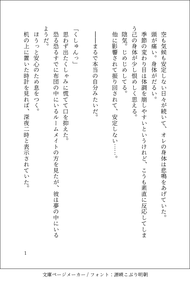 はいびす☆quiet followTIRED不眠症の一成の話 ##みすかず show all(+2 images) Tap to full screen (size:630x928).Repost is prohibited Let's send reactions! freqpopularsnackothersPayment processing Replies from the creator Follow creator you care about!☆quiet follow はいびすMEMO4周年キーホルダーの行方まとめ*ネタバレ注意 356 はいびすMAIKING海賊に捕まって薬打たれたポールさんを助けに来たと見せかけて、そのまま監禁調教する船長がみたくて書いた。※スカポー 2 はいびすMAIKING心が読めるようになったぴこが、片想いの相手であるすみーの心を読んでもだもだする話(になる予定だった)※すみーはでてきません。最終的にはみすかず 6 はいびすMAIKINGひょすめ(兵皇)裏でメモ書きしてた初めてのキスの話。みすかず要素あり。じゃあするぞと確認すると、十座さんはああと頷いた。 意を決して目を閉じ唇を突き出す。 所謂キス待ち顔ってやつをしてみる。 こういう芝居はいままで何度もしてきたはずなのに、自分の意思でとなると恥ずかしくて、目を閉じてるのもあって徐々に不安になってくる。 待っている感触も降りてこなくて、本当にこれであってるんだろうか……なんて考えていたら、かさついたでも柔らかいものが触れた。 ふいうちだったから、思わず肩が跳ねた。 ただ触れているだけだ。 だけどオレにとっては初めての……。 ああまずい。心臓が痛いくらいバクバク音を立てている。 この音が聞こえたらどうしよう。 ぎゅっと服の裾を握る。 でもキスには段階があって、今してるキスはまだ序の口。『恋人のキスがしたいなら、ヒョードルの唇をテンテンの唇で軽く、はむっとするといいかも! オレがそうするとすみーが恋人のちゅーしてくれるんだよねー』と以前恋人らしいことをしたいと相談した時、一成が得意気に言っていたのを思い出した。 はむっと……してみるか? はむっていうのがよく分からないが……。 相変わらず相手は固まったまま動かない 1104 はいびすMEMO裏で呟いてたネタまとめぴこ派生龍族妄想。炎龍アラジン。魔人はアラジンの周囲にいる炎の精霊と会話ができ、アラジンが龍族の末裔の為、一族で虐げられてきたと把握してる。(枯渇の原因にされてきた)覚醒すれば人として生きていけなくなることも知っており、そうならないように監視してる。…という体で書いていたものの見事に脱線した。ぴこ派生龍族妄想。炎龍アラジン。魔人はアラジンの周囲にいる炎の精霊と会話ができ、アラジンが龍族の末裔の為、一族で虐げられてきたと把握してる。(枯渇の原因にされてきた)覚醒すれば人として生きていけなくなることも知っており、そうならないように監視してる。…という体で書いていたものの見事に脱線した。↓↓↓ 初めて主の肌にソレを見つけたのは、寝食を共にするようになって10日頃だった。 ソレは炎のように赤くしかし薄く硬いもので、光に当てると淡い光を帯びる。 数百年生きてきて話には聞いていたが、実際に手に取ったのは初めてものだった。 本人はソレを持つことに対して自覚がないようだった。 俺もソレを持つ一族が覚醒した後待ち受ける凄惨な末路を知っているから口にはしなかった。 そしてその日から、ソレを見つけた時は見つからないように処置を施してきた。 今日久方ぶりにソレを見つけた。 コレがある……ということは主の身に何か変化があったと言うことだ。 まだ夢の中の主を起こさぬように注意しながら服を捲る。 と、やはり「剥がれ落ちた」のだろう部分が火傷のように爛れていた。「んぅ… 1619 はいびすMOURNINGテキスト版お試し上げDomSubみすかず本でページの都合削った天馬との密会場所。一応こんな設定だった的なやつ。「ここー?」「た、たぶん?」 テンテンからオレ達だけに話があると連絡が来たのはそれから数日後だった。 すみーと2人で来るよう呼び出されたのは高級クラブの入口のような場所だった。 重厚な扉に黒ずくめにサングラスのガードマンらしきひとがいて、とてもじゃないけど近寄れない。 実際何人か追い払われて入店お断りされたのも見た。「やべー……ドレスコードとかいる系じゃんこれ」 テンテンはそれぞれLIMEで送った画像を見せれば大丈夫だって言ってるけど。 せめてそれっぽい服に着替えてから行った方がよくない? なのに待ちきれなかったのかすみーがてこてこ店の方に行ってしまった。「ちょっ! すみー!」「すみませーん」 慌てて追いかけると、ガードマンがオレ達の方を見た。「当店に何か御用でしょうか」 ドスの聞いた声で威圧をかけてくるガードマン。「あ、えっと……」 オレがどう切りだそうかと考えているとすみーが自分のスマホを見せた。「お願いしまーす」 スマホを受け取ったガードマンがスマホに向けて何かをかざした。 ぴーっという音がなり、ガードマンはすみーのスマホを胸の内側にしまった 1427 recommended works はいびすTIREDただスカポーがオンセンに入るだけの話。 2 もんだいDOODLEMarjorine × Kenny のnsfwです女装・リバ表現注意Pass:2人
