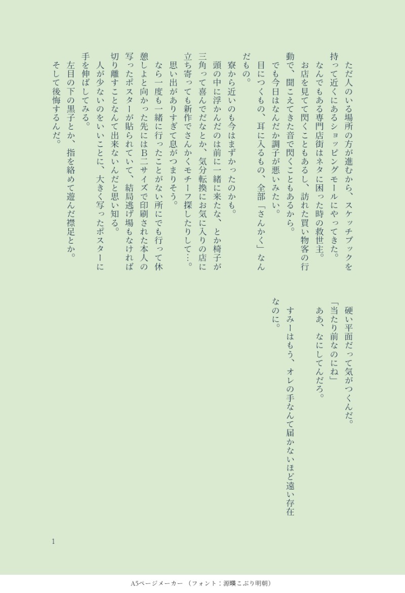はいびす☆quiet followMAIKING@tos みすかず:#びすのメモ帳すみーが人気俳優になり、別れてしまったみすかず話。ちゃんとくっつく(予定) #みすかず numberOfItems Tap to full screen (size:888x1300).Repost is prohibited Let's send reactions! freqpopularsnackothersPayment processing Replies from the creator Follow creator you care about!☆quiet follow はいびすMEMO4周年キーホルダーの行方まとめ*ネタバレ注意 356 はいびすMAIKING海賊に捕まって薬打たれたポールさんを助けに来たと見せかけて、そのまま監禁調教する船長がみたくて書いた。※スカポー 2 はいびすMAIKING心が読めるようになったぴこが、片想いの相手であるすみーの心を読んでもだもだする話(になる予定だった)※すみーはでてきません。最終的にはみすかず 6 はいびすMAIKINGひょすめ(兵皇)裏でメモ書きしてた初めてのキスの話。みすかず要素あり。 1104 はいびすMEMO裏で呟いてたネタまとめぴこ派生龍族妄想。炎龍アラジン。魔人はアラジンの周囲にいる炎の精霊と会話ができ、アラジンが龍族の末裔の為、一族で虐げられてきたと把握してる。(枯渇の原因にされてきた)覚醒すれば人として生きていけなくなることも知っており、そうならないように監視してる。…という体で書いていたものの見事に脱線した。 1619 はいびすMOURNINGテキスト版お試し上げDomSubみすかず本でページの都合削った天馬との密会場所。一応こんな設定だった的なやつ。 1427 related works みやびDOODLEみすかず/ビリヤードグローブえっちすぎて手コキしてほしいと思ってたのに気がついたら兜合わせになってた😌一緒にきもちよくなっておくれ…💕 はいびすMAIKING@tos みすかず:#びすのメモ帳すみーが人気俳優になり、別れてしまったみすかず話。ちゃんとくっつく(予定) はいびすDONE猫の日遅刻のみすかずちゃん。2人に子供がいる設定。(オメガバース的な)令和2年2月22日にちなんで4人家族。可愛いは正義。猫耳も正義。※あえてすみー呼びしてません 6 karuki142PROGRESSタマかずペン入れおわった〜〜明日からスカポ!!頑張ってください!(自分へ) 3 はいびすDONEメモ帳整理してたらでてきたタマクロ。そぼろちゃんからもらったリクエスト。 みやびDOODLEどちらからともなく貪り合うみすかず(ちゅーしてるだけ) 2 みやびDOODLE3周年エチュード見てたら描きたくなったヨシキイえろ 仕様上逆に見えるけどヨシキイと言い張るよお…なおオチはないです はいびすDONE前回のみすかずワンライのお題「限界」に間に合わなかったやつですけど、もったいない精神であげますね。酔ったすみーにたるちが振り回される話。 11 はいびすDONE同棲するみすかずの話幸せの音ポイピクにまとめるのに再アップ 6 recommended works nicoyossyPAST2-⑤ 五棘オメガバース漫画狗巻家の話とお互いの気持ちを確認する話2022/1/24 pixiv投稿 22 えいちDOODLEえすり/みすかず 今井ひとりDOODLE5/5 ひなけん けんひな オメガバース 9 アライMOURNING描き終わらないオメガバ主花香水コラボのシトラス味の陽介良すぎるからずっと描きたかった⋯本できなくて本当に悔しい~~~前半は二人が番になる話、後半は年齢操作巣作りの話悠はシャドウワーカー、陽介は在宅勤務大人陽介はめっちゃエロいという設定があります。(はい汚いネームさらにセリフなしで申し訳ない⋯⋯心で感じてほしい⋯ 46 LEON_OHKA3MEMOドトラン💥🪐乳首開発されちゃって困ってるランスくんめちゃくちゃ緩いけど一応パス付けます。18歳以上? 2180 hazuki__iiiDOODLEまおりつ巣作り らむねてゃDONEバナナとの合作だねぇ otku_wtsukiDONEナオちゃん呼びに味を占めたハル ぐろいどDONE🖕⛓️🏴☠️🪲の後日談。(https://poipiku.com/10718918/11195690.html)の続き。リカルドのキャラブレがあるかも。Pass:cp4桁数字 2747