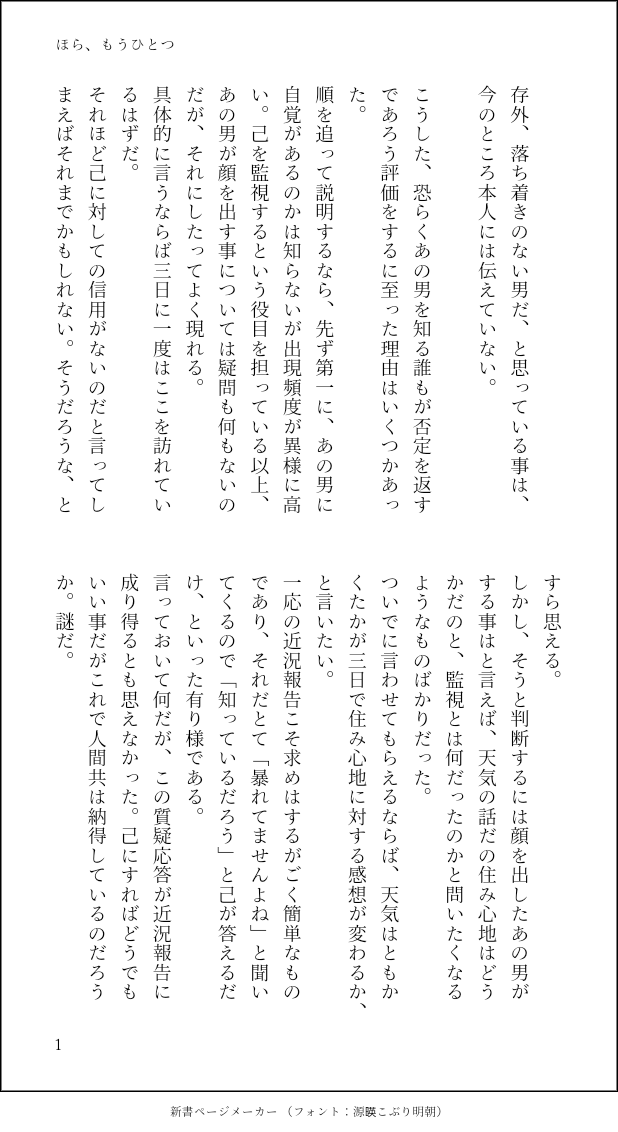 やなぎ☆quiet followDONEほら、もうひとつ前回と繋がる司令サイド友情出演はピンクのワニさん #基本軸 basicAxis show all(+9 images) Tap to full screen (size:618x1132).Repost is prohibited Let's send reactions! freqpopularsnackothersPayment processing Replies from the creator Follow creator you care about!☆quiet follow やなぎDONEたまきず時空avhd 21 やなぎDONEavhd短編 20 やなぎDONE色々詰め込み(2022) 19 やなぎDONEきみが一番ほしいもの今更ながらにクリスマスネタのhdavうちのどの設定のhdavでもないですがいつもと大した差はありません。クリスマス当日の気分でお読み頂けたら幸いです。ポプくんとメルちゃんが出演。 54 やなぎDONE出られない部屋×1基本軸とは別の二人ですがハドアバ診断結果によってシリーズ化する予定 12 やなぎDONE青空に猫と閑話基点よりも前でウインク話と同時期名前は出てませんがワニさん視点です 6 related works やなぎDONE前夜、そこに到るまでドラゴラム話の前日のハドアバ行為自体は相当ぬるめですがいちゃいちゃは激しめ 19 やなぎDONEついったで呟いたネタ司令と仲良く(意味深)した翌日に島でcuくんに「hmちゃんのお父さんの匂いがする」と指摘されて思わずドラゴラムしちゃった先生、のハドアバ時系列はちゅーしてるのよりまあまあ後 7 やなぎDONE10秒あとに振り向いて基点より前の話ストレスフルな先生と何となく優しい司令 4 やなぎDONEご迷惑をおかけします基点よりも前でストレスフル寄りの時期ウインクの話と見せ掛けてそうでもない 7 やなぎDONEそして二人でご勝手に基点よりも後でくっつく寸前ぐらいハドアバなのに主演はppくん 8 やなぎDONEほら、もうひとつ前回と繋がる司令サイド友情出演はピンクのワニさん 10 やなぎDONE青空に猫と閑話基点よりも前でウインク話と同時期名前は出てませんがワニさん視点です 6 やなぎDONE来週あたり、如何です?本筋のハドアバ友情出演は師匠これ以外の話の時系列はこれを基点に前進してたり後退してたりします 14 recommended works いちのえDONEDKぬいくんの日常(学パロちょっとホラー)密T好きだよごめんね いちのえDOODLE前作学パロ漫画の没カットだったんだけど可愛く描けたから仕上げてup/じろさぶ入れといたよ marmaladeMAIKING18歳🐦と10歳🎲が恋人してる学パロ理帝ちゃんほしい 苔@kokeampkDOODLE学パロでトワブレです 苔@kokeampkDOODLEトワブレ前提での学パロでの暑中お見舞いです。暑い日が続きますが、お体ご自愛下さいませ。 苔@kokeampkDOODLEトワブレで学パロです。 2 rrrrrzzyTBOkyDOODLE学パロ鯉月(バレンタイン)🌙高3、🎏高2。終わり方はあれですが最終的にはハピエンになる…はず…素敵なネタを投下していただきました!ありがとうございます(*^-^*) 5 はくろうPAST2019~2020年くらいに うちよそで学園パロ漫画を描いていました。今でも話題にして頂けるほど好評でしたので、その時のお気に入りの話を再掲しておきます!⚠️同時仲良くして頂いていたフォロワーのCPも普通に登場するので、「夢女子」さんの存在を認識している方向けになると思いますm(_ _)m 23 tefu_hhthDOODLE不良優等生シリーズw今回はドト金単品。最近勝金、鳴(銀)フェイに加えてドト金がめちゃくちゃ僕の中でアツイ。 6