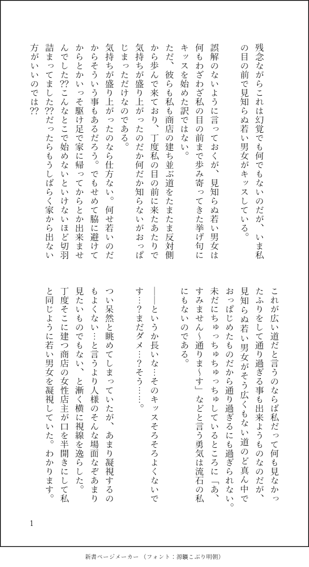 やなぎ☆quiet followDONE色々詰め込み(2022) show all(+18 images) Tap to full screen (size:618x1132).Repost is prohibited Let's send reactions! freqpopularsnackothersPayment processing Replies from the creator Follow creator you care about!☆quiet follow やなぎDONEたまきず時空avhd 21 やなぎDONEavhd短編 20 やなぎDONE色々詰め込み(2022) 19 やなぎDONEきみが一番ほしいもの今更ながらにクリスマスネタのhdavうちのどの設定のhdavでもないですがいつもと大した差はありません。クリスマス当日の気分でお読み頂けたら幸いです。ポプくんとメルちゃんが出演。 54 やなぎDONE出られない部屋×1基本軸とは別の二人ですがハドアバ診断結果によってシリーズ化する予定 12 やなぎDONE青空に猫と閑話基点よりも前でウインク話と同時期名前は出てませんがワニさん視点です 6 recommended works HazaculaDONEこの時期になると、中学時代に寒い体育館で合唱コンクールをやったのを思い出します。艦娘合唱祭とかやってほしいけど、男声をどうするか問題があるな……曲名は察してください(あまりあからさまに歌詞を載せると、色々引っ掛かりますので さばみMEMO特に必要のない設定を色々考えてるのが楽しい。あ、ホロはスポーツブランド系のがよかったかな。ぴりかちゃんはジェラ…ケ一択で。というか女子には全員着てほしい がっつ@聖剣3DOODLE【らくがきすぎる学パロ】一応完成したのでポイピクまとめ。前に描いた学パロ設定まま、デュラアン幼馴染。公式アンケート結果見たら描きたくなりました。ホークリちゃんは学内1位同士美男美女カップルだね!! 15 marmaladeDONE学パロ理帝ちゃん盛り上がってるね 苔@kokeampkDOODLEトワブレです 名塚@natsuka0331DONE学パロ(大学生)忘羨(つきあってる)傘を差すのが下手な魏嬰くんと上手な藍湛さんの話 5 苔@kokeampkDOODLEトワブレ前提での学パロでの暑中お見舞いです。暑い日が続きますが、お体ご自愛下さいませ。 苔@kokeampkDOODLEトワブレで学パロです。 苔@kokeampkDOODLEトワブレで学パロです。 2