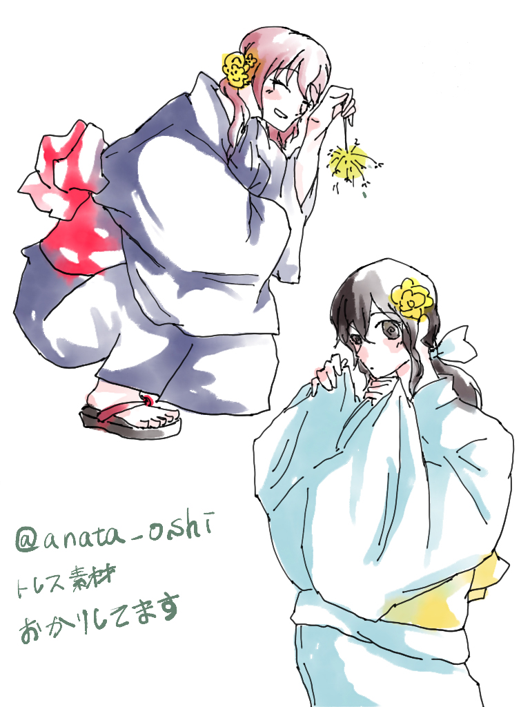 ミケマリ浴衣。動画の黄アネモネペア。トレス素材をお借りして。