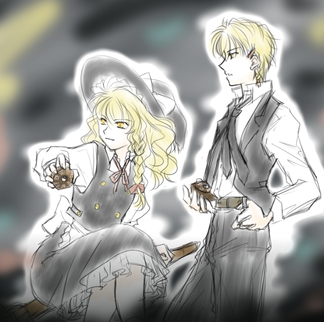 共闘する魔理沙さんと魔理沙くんのらくがき。いつか仕上げたい