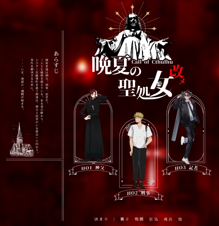 sosikikun☆quiet followDOODLECoC 「 晩夏の聖処女改メ 」KP: 粥ころPL: HO1 太郎 / 山岩 端灯 HO2 さうこ / 雲居 夕 HO3 倉科 / 守宮 宗近「 俺は愛嬌でやってるんで! 」【 全生還 】 Tap to full screen (size:724x746).Repost is prohibited Let's send reactions! freqpopularsnackothersPayment processing Replies from the creator Follow creator you care about!☆quiet follow sosikikunDOODLEメル言げんみ❌ 2 sosikikunDOODLEセプペカげんみ❌傲慢⭕️ 義務 sosikikunDOODLE瞑瞑館HO1 差分 20 sosikikunDOODLE都市伝説課げんみ❌ 4 sosikikunDOODLEココフォリア部屋作り部2025 21 sosikikunDOODLEならつぐげんみ❌こめさん⭕️ これ初陣HO4との会話です 3 recommended works 1kanzashiTRAININGisrn 🤗18↑ y/n 2 りんごはちみつDOODLE☂️さん全否定できなかった時の例のシーン、顔近すぎたので描いたらくがき⚠︎主人公の顔出てます。 nanashiDOODLEイーハトーヴォ物語 OshiikiteyoooINFOCoC『エンジェルデビルインプロパー』(作:臓器売買 様)KP:大樹さんPL:(HO順)HO天使:くない(ティモシー・ローウェル)HO悪魔:彩硝子さん(デイヴィット・フォールグリーン)以外感想 2 Crust_sugarPROGRESSり〜だ〜、どうにも頭身低くなってまう raccoondog_cuteDOODLE雪とか氷の人たち 2 Lienanthit138DOODLE🍊🍊🍊 楽しいことしかないDOODLE手に焼き鳥の串を突き立ててみるとこれが意外と穴空くしズキズキしてびっくりした 痛い だけどいいことではあるな Lienanthit138DOODLE 3
