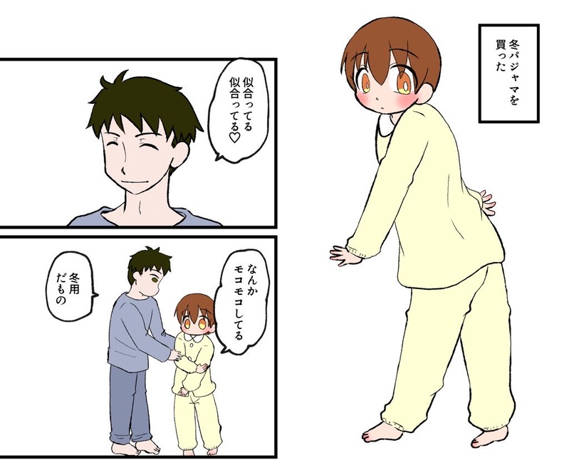 冬用のあったかいちょっとモコモコしてるパジャマを買ったシュウアキの話アキくん編です。