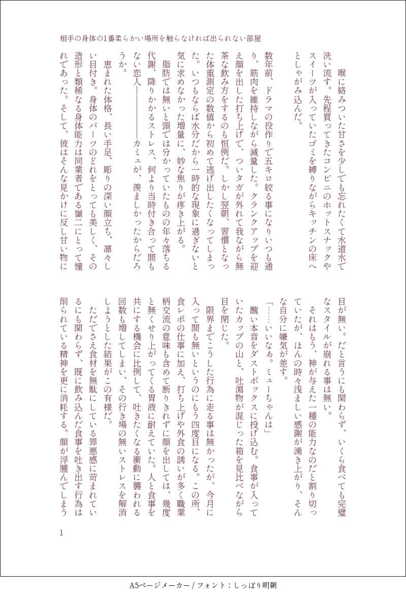 Hana_41_☆quiet followDOODLE「吐」人を選びそうなカミュ嶺チューイングを辞めたい嶺二の話。どんな嶺二でも愛玩するカミュも好きです。複雑な気持ちを抱きながらも、促されて罪悪感を口移しする嶺二がたまらないカミュ。 ##小説 show all(+5 images) Tap to full screen (size:888x1300).Repost is prohibited Let's send reactions! freqpopularsnackothersPayment processing Replies from the creator Follow creator you care about!☆quiet follow Hana_41_MAIKINGカミュとミネの話とか書きたい Hana_41_PASTカミュと嶺二の息子、壱視点の嶺二との話。 5 Hana_41_PASTカミュ嶺の息子(双子)、壱(イチ)と嶺(ミネ)がいます。 5 Hana_41_PAST嶺二が妊娠しています。R18要素あり 6 Hana_41_DOODLE🍨おかわり(無限ループ) 2 Hana_41_DOODLE見られながらぽよぽよになってますますあかくなるれいじとか recommended works ichigo_freedomDONE #うたプリトキヤ 🍵🍵🍵DOODLE雪月花欲しい… 2 66_sougetsuDONE つばきさんDONE藍ちゃーーーんんん!!!!!!!お誕生日ー!!!!!!!!おめでとうー!!!!!!!!!! maroDONEソロアルバム一周年おめでとう♡ Deu_in_the_AirDOODLEnsfw warning maroDOODLE *Noel*PROGRESSサイジュダ不足😢ブツ出てないけど念のためワンクッション。エッチしてるのが見たく少しずつ描いてる〜🥃💓🐺2、3枚目は下書き時点のとか。 3 satouankou0383DOODLEParanormal crime2 ラブアンドデストロイ全話バレですパスワードは0話時点のシルバーの年齢 2