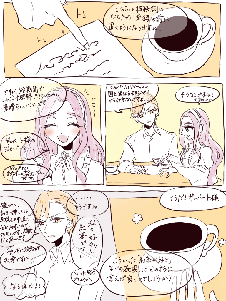 横書きは異国語(リリーの国の言葉)、縦書きは自国語(ギルバートの国の言葉)ってかんじで書いてます 漫画の練習 読みづらくてごめんなさい