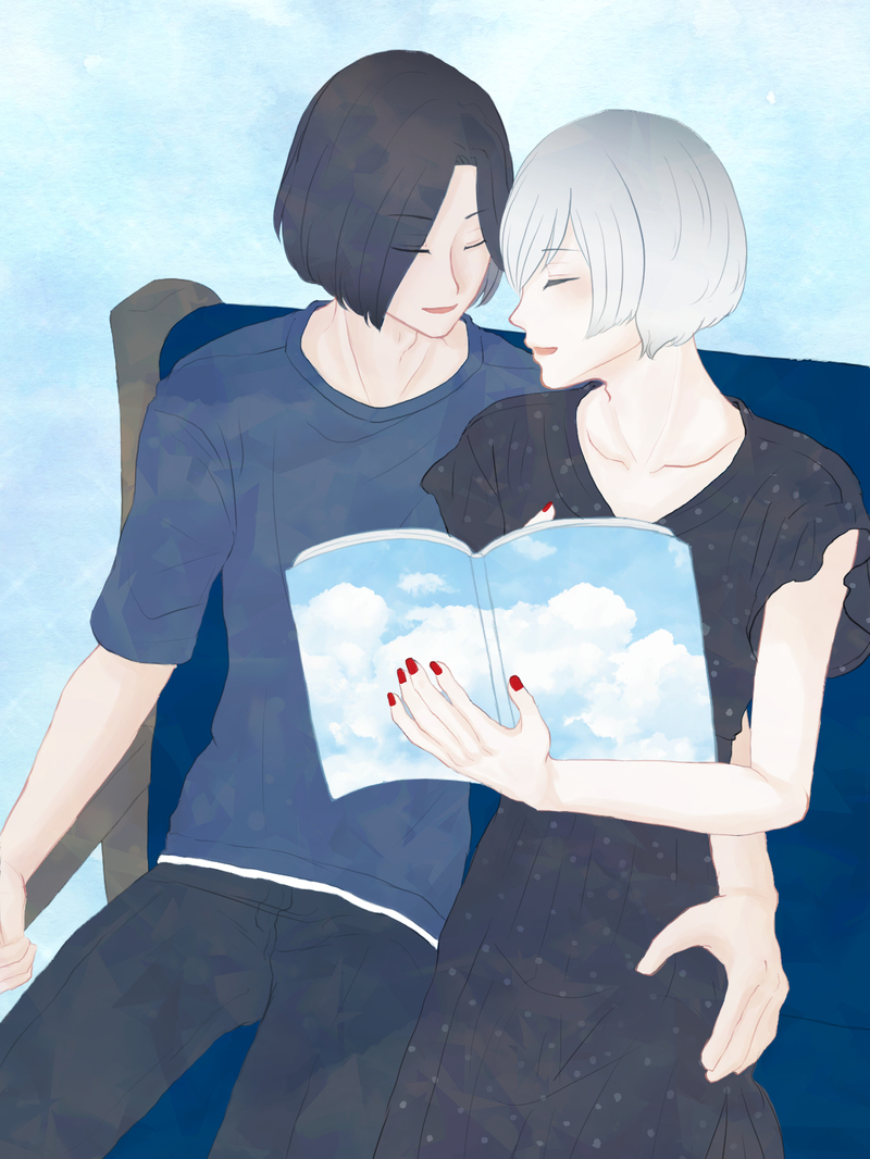どちらかの家のソファでのんびりしていてほしいという気持ちとか、読んでいた雑誌が観光地の特集のページに差し掛かったとき「今度ここに行きたいね」とか話してほしいという気持ちとか、まあ近しき距離にいてほしい気持ちとか、色んな気持ちを詰め込んだ絵です。毎回妄想詰め込んでいて照れ…。
