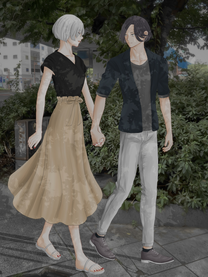 デートしているところをみたいの気持ちになったので描き始めました。といいつつデートじゃなくてもいいです。ちょっとした散歩とかでも、手を繋いで歩いているところが見たいの気持ち。