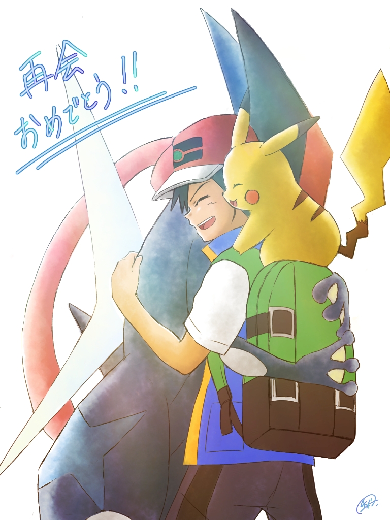 過去に描いたゲッコウガとの別れ場面を、再会にしたやつ。(※模写のリメイクアレンジVer.)