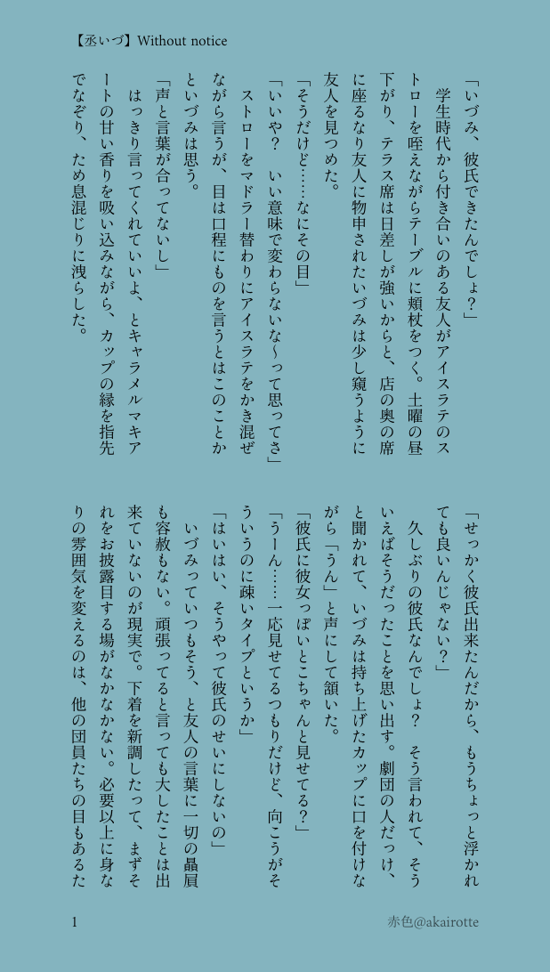 akairotte☆quiet followDONE【丞いづ】Without notice ##A3! ##丞いづ show all(+4 images) Tap to full screen (size:618x1092).Repost is prohibited Let's send reactions! freqpopularsnackothersPayment processing Replies from the creator Follow creator you care about!☆quiet follow akairotteDONE【ヘヴ夢/ヴァン夢R18】 4 akairotteDONE【ヘヴ夢/瑛二夢】夜更かしする話 4 akairotteDONE【綺羅夢】はじめてのお泊り 3 akairotteDONE【社会人パロ】大和夢。 3 akairotteDONE燐音くんとセが付くオトモダチを辞めるはなし。 6 akairotteDONE【燐音夢】Unusual※燐音くん非童貞です。軽めの描写あり。夢主年上。 4 recommended works azhm_TMP-SAVE #A3! ガイ 3tubakiDOODLE最近有栖川誉がやたらかわいく見えて仕方ない#A3! #有栖川誉 うしおDOODLE #A3!春組を全員描こうチャレンジ さっくんとシトロンシトロン難しい… 2 美沙也0424DOODLE #A3!#茅ヶ崎至 enchahaMAIKING #A3! #月岡紬 m_r_s_s_r_m0106DONE結局完成させた茅ヶ崎至さん(初めて描いた)何か食べてるシリーズ第3弾(1、2は別ゲーの子だけど)あんま似なくて申し訳ないです… ねいびーPROGRESSまだできません… 73_kryDONE自分の趣味を詰め込んだひそほま m_r_s_s_r_m0106DOODLE有栖川誉さんで一昔前に流行った提供ネタというかもともと別の目的で描き始めたのですが、供養行きになりそうなので塗りも未完ですが遊んでしまいました(笑)