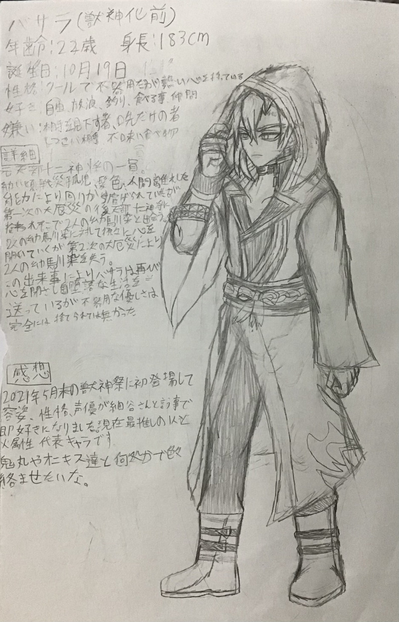 自分用設定資料予定のバサラ(獣神化前)を描いてみた✍️
