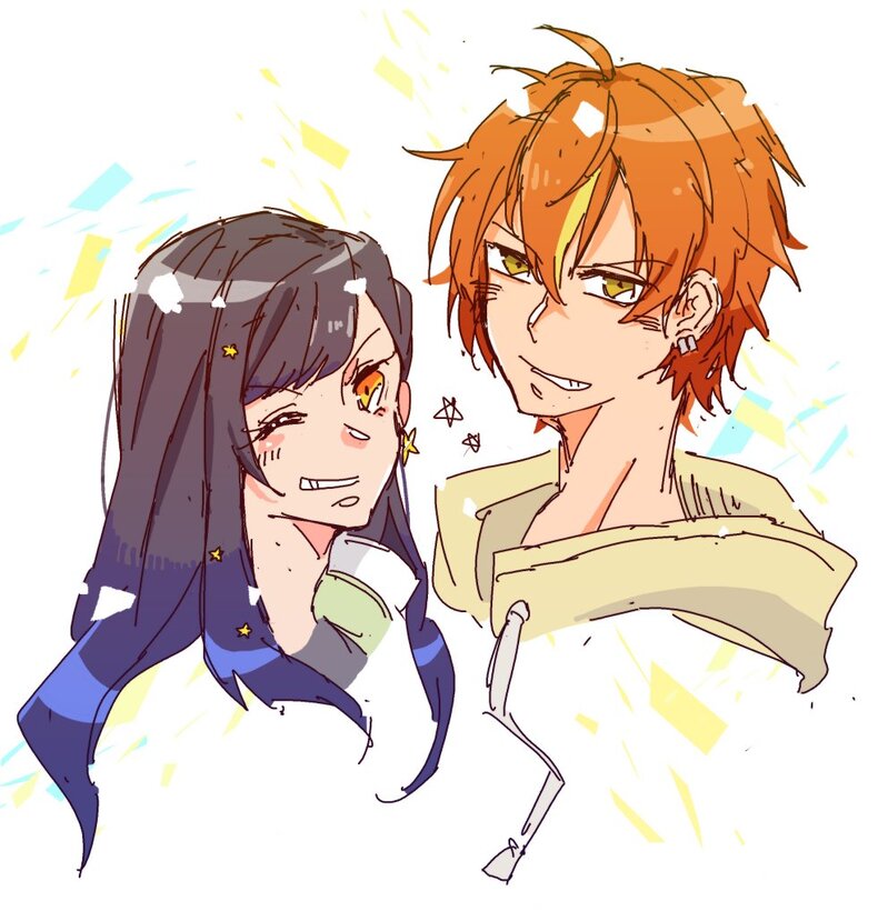 6>ワンドロのお題聞いた時に滾ったやつ。彰人くんが下段と光と真ん中で杏ちゃんが上段と影と端だけど星空。かなり気に入っている。描き直せ。