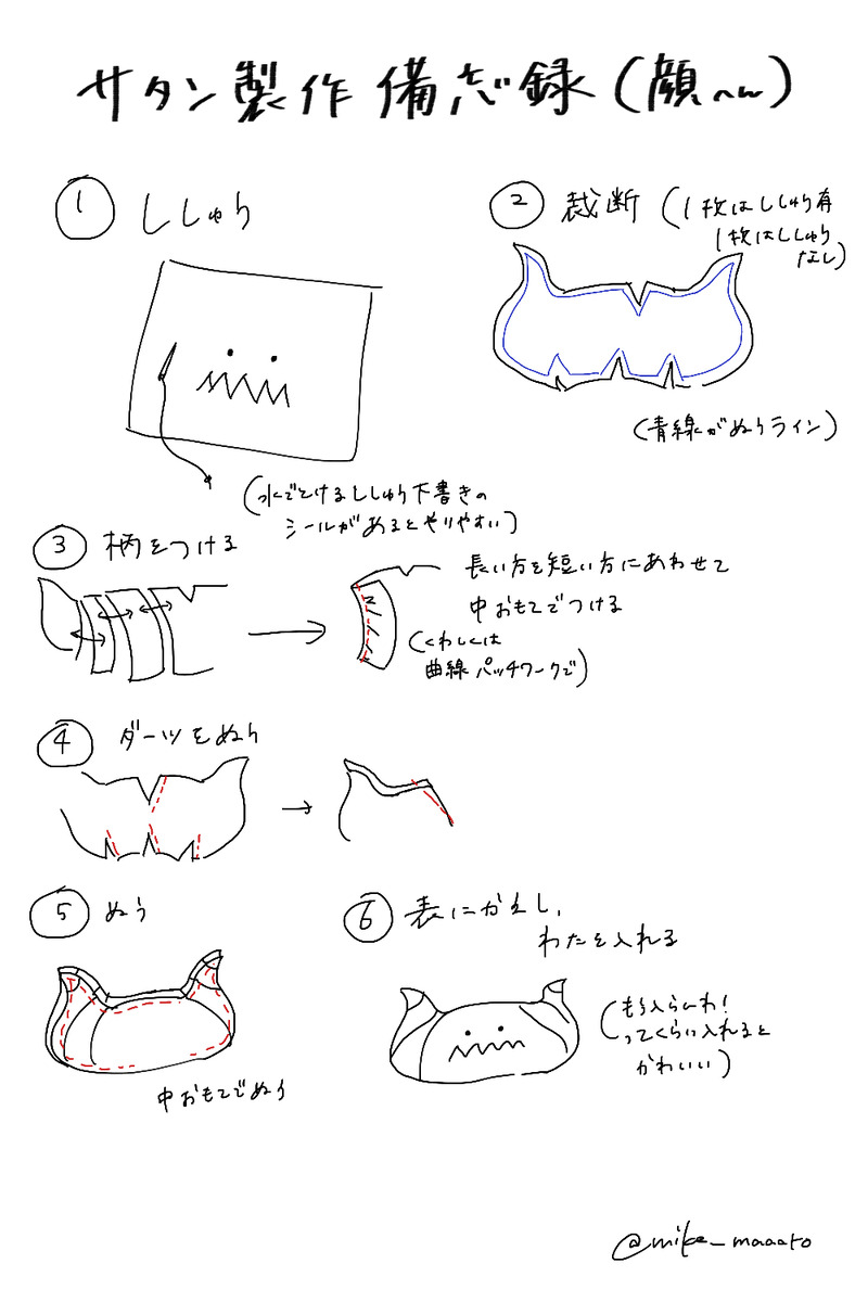 mike_maaaro☆quiet followMEMOサタン制作の備忘録。自分用のメモだから、ほんんんとうに分かりづらい。上に写真は顔しか残ってなかった。型紙は縫代ありなしややこしいから載せられそうにない… show all(+8 images) Tap to full screen (size:1000x1500).Repost is prohibited Let's send reactions! freqpopularsnackothersPayment processing Replies from the creator Follow creator you care about!☆quiet follow mike_maaaroMEMOサタン制作の備忘録。自分用のメモだから、ほんんんとうに分かりづらい。上に写真は顔しか残ってなかった。型紙は縫代ありなしややこしいから載せられそうにない… 9