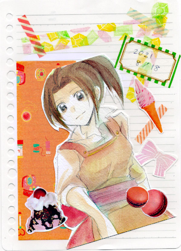 今日の一枚!オリジナル漫画「僕らの傭兵団!」ミナミ。マステ多用のせいかルーズリーフ感がすごい!でもその罫線がアナログっぽくて最近気に入ってきましたv