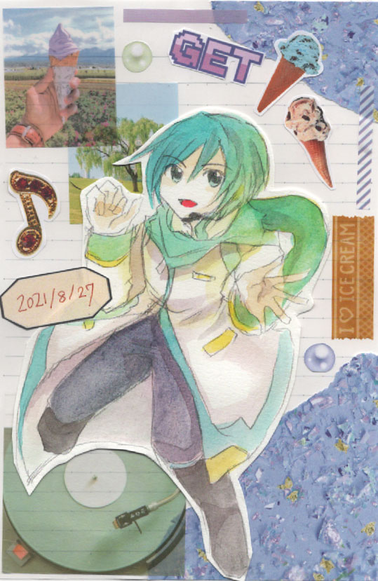 兄さん描くの久々~!アイスがテーマです!左下のシール貼るの滅茶苦茶大変だった