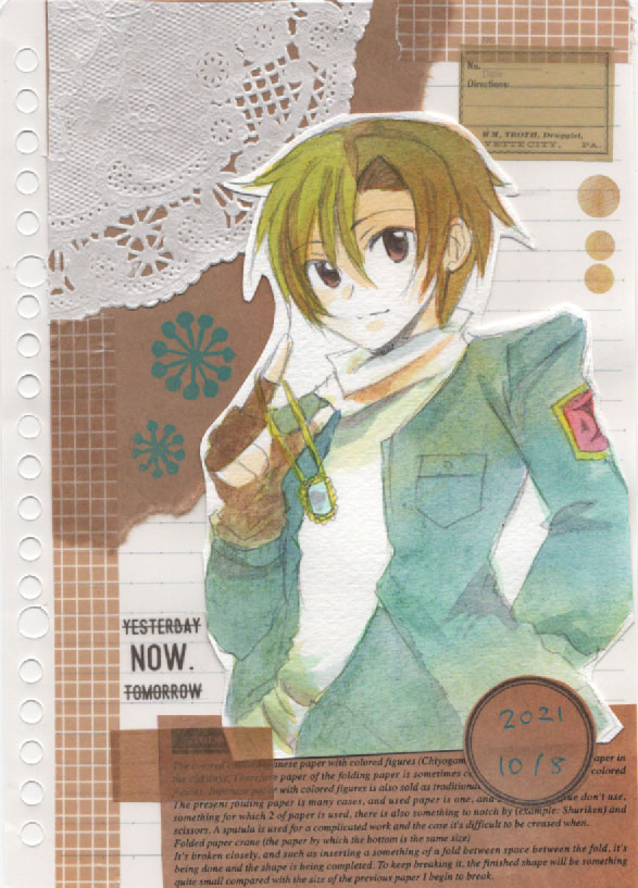 今日の一枚!オリジナルよりエルード。コラージュのメインカラーは茶色で✨チェック柄のマステは大好物ですvあとレースペーパーは相変わらず大好き