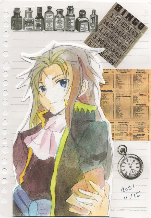 今日の版権絵!FF6よりセッツァー。KH2で出てきた時は前情報無かったからついに天野キャラ来たか!…って思ったら情けない役でビビの方がストーリー的に役に立ってた
