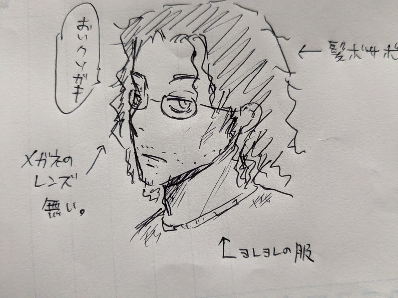 涼と樹の話に出るか出ないか分からないけど、こんな草臥れたオジサンキャラが涼に絡んで来たら面白いかもと思い付いて描いた。最初は泉谷◯げるさん系にしようかと思ったけど、BLだったらこういう系の方が良いのか?と思い、こんな見た目に。