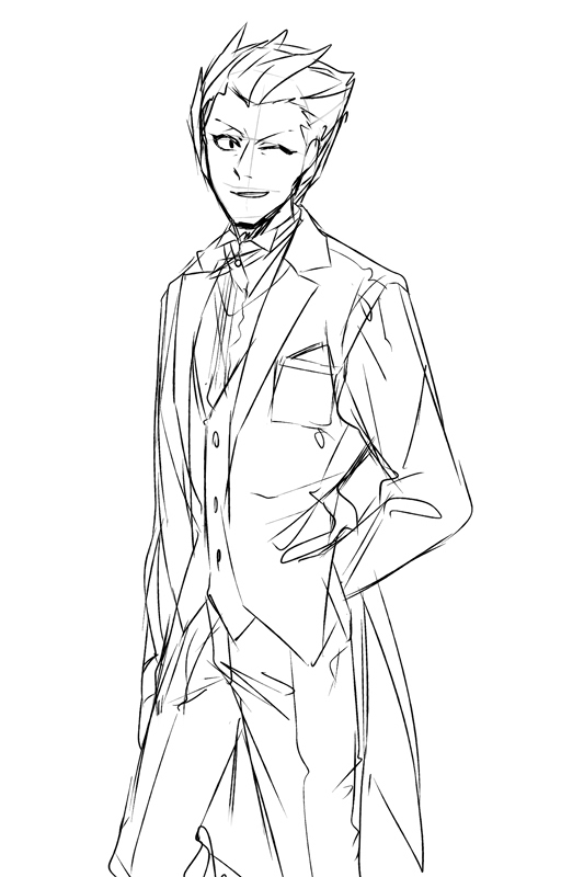 無印3期のイギリスお呼ばれ正装回にアメリカ組の二人がいなかったことを未だに悔やんでいるので土門くんに正装を着せてみた落書きと、私服っぽいのを着せた絵です。2枚目は10年後のつもりで描いたけどあまり10年後っぽくないので大学生くらいだと思ってください。