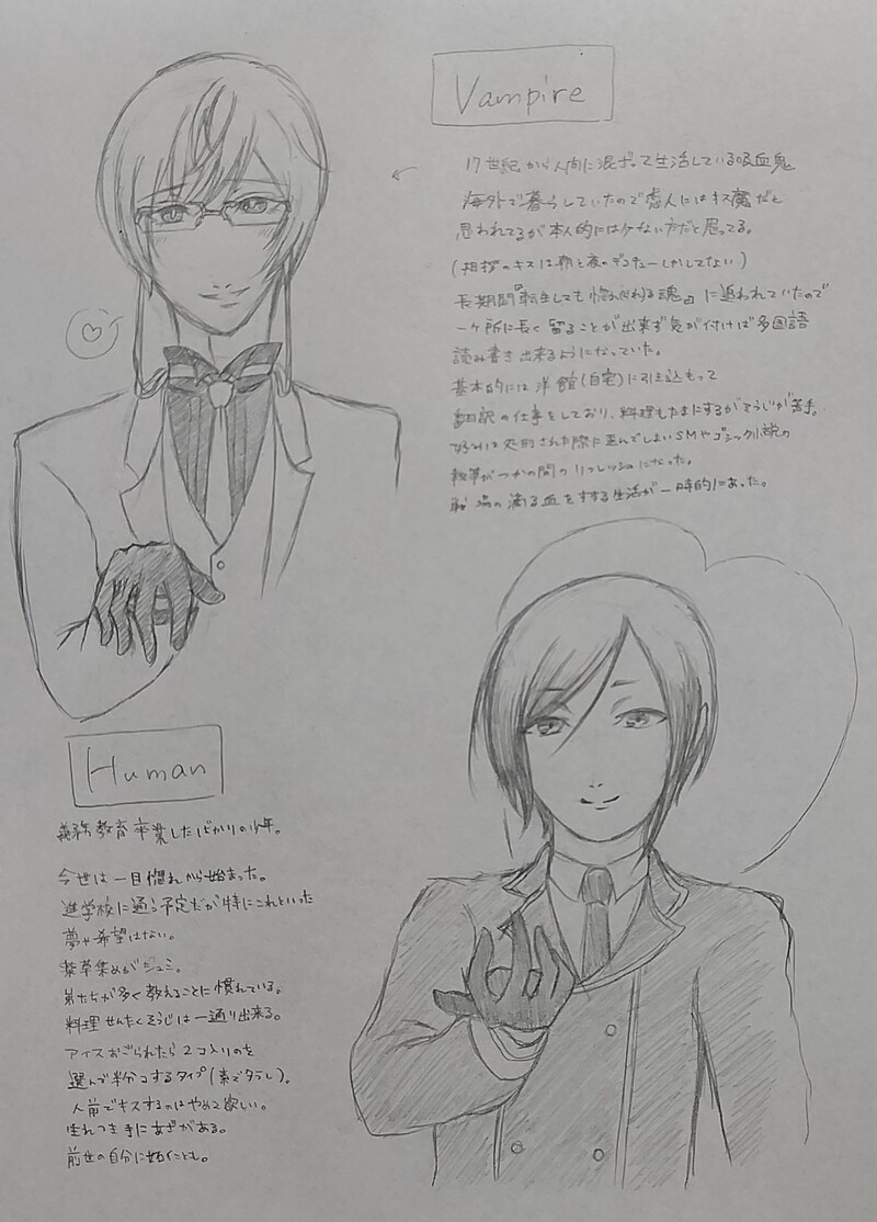 雨実 彗☆quiet followMAIKING最後までシリーズの設定を適当に詰めましたので1度目を通して頂ければ幸いです(クリック&拡大推奨) ##最後までシリーズ #愛を償うなら最後まで #薬亀 #愛を囁くなら最後まで #源氏 theMinamotoFamily #愛を育むなら最後まで #伊達組 idaGroup #広義の前世が今の姿と同じとは限らない show all(+4 images) Tap to full screen (size:1080x1504).Repost is prohibited Let's send reactions! freqpopularsnackothersPayment processing Replies from the creator Follow creator you care about!☆quiet follow 雨実 彗PROGRESS薬亀の分からせ本表紙(おそらく出ない本)カラーと分かり合えたら印刷物出します 雨実 彗DOODLE【ギャグ】輪廻転生の✂️×吸血鬼の🐢(薬亀) 2 雨実 彗MAIKING最後までシリーズの設定を適当に詰めましたので1度目を通して頂ければ幸いです(クリック&拡大推奨) 5 雨実 彗INFOタイトル決めたのでタイトルロゴ(仮)作ってみましたゆくゆくは背景真っ黒なところにロゴ置きたいです 4 雨実 彗MEMO現代転生パロ学生✂️×ヴァンパイア🐢の薬亀8枚目、9枚目は【⚠️工ロ】です 9 related works 雨実 彗INFOタイトル決めたのでタイトルロゴ(仮)作ってみましたゆくゆくは背景真っ黒なところにロゴ置きたいです 4 甘味料DOODLE【⚠️背後注意】【R-15】顔が潰れるかも知れないので 雨実 彗MAIKING最後までシリーズの設定を適当に詰めましたので1度目を通して頂ければ幸いです(クリック&拡大推奨) 5 雨実 彗MEMO現代転生パロ学生✂️×ヴァンパイア🐢の薬亀8枚目、9枚目は【⚠️工ロ】です 9 recommended works のまです。DOODLE刀ステの蔵出し映像集が届きました。#刀剣乱舞 #伊達組 らいかDONE伊達組で現代遠征!(背景写真はフリー素材から) 2 甘味料DOODLE狼と魔法使い審神者「ねぇ、この間ミイラ男にするって亀甲連れていったの何だったの……?」 甘味料Reuse Christmas【亀甲の性癖】今夜はお楽しみですね3枚目は亀甲の別ポーズ、4枚目は2枚目の文字入り 4 甘味料TRAINING審神者「やや重症のオタク化(既製品を好きな子として買う)してしまったのは悪いと思ってる」※霊気提供してると一部影響が出る 甘味料TRAINING審神者「付き合ってることは知ってた!!けど!!!!!まさか贈り合ったチョコを共有してるどころか主に向けて公開プレイしてるとは思わないでしょ!?(※これでも一期には隠してる)」 甘味料DOODLEもし薬研が顕現前の亀甲に興味持ってたら顕現時に喜びが抜きん出てしまいそうだなと思っただけの薬亀 甘味料DOODLE【⚠️お酒は20歳から】審「見てこれ可愛くない?」薬「それいつのやつだ?」審「遠征中かなぁ。酔っ払って好きなもの挙げていったときの」 甘味料DOODLE莉駒本丸の薬亀ハロウィン2020 2