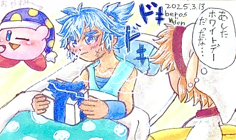べろす丼☆quiet followDONE木曜なのでアナログどんべな絵。明日はホワイトデーでございますとの事で毎年恒例かもしれないバレンタインのお返しを気合い入れて準備して今夜も夢枕で渡すつもりなどんべちゃん達in今夜リンクちゃんの寝巻きはFCカラーですが抱えとる黄色い物は例によってディスくんぬいだと思われる。 #任天堂 nintendo #どんべ slow-wittedPerson #カービィ Kirby #リンク(ゼルダの伝説) link #アナログ analog #コピック copic Tap to full screen (size:917x546).Repost is prohibited Let's send reactions! freqpopularsnackothersPayment processing Replies from the creator Follow creator you care about!☆quiet follow べろす丼DONE木曜日なのでアナログどんべな絵。今日は豆腐の日なのでどんべちゃん達は各々で豆腐持ってきましたが多分茸煮会のキノコ以外の具を用意するのを兼ねてという事にしよう…(メンバー増えてる気がするが) べろす丼DONE木曜日なのでアナログどんべな絵。ATCのマーメイドボードで答えのトイロノで描いたどんべちゃん走ってる途中な感じを意識した様。実は別の絵を上げる予定でしたがペン入れする際うっかり耐水性でないペンで描いてしまい(ry べろす丼DONE木曜日なのでアナログどんべな絵先週の絵の続きの様になったきのこ狩りの際にふとキノコ取るのに夢中などんべの頭を見てみたら…な今日のカビちゃんとリンクちゃんな絵。塗りはコピックとコピックアクレア少し使ってます。 べろす丼DONE木曜日なのでアナログどんべな絵。秋といえばキノコと言うわけで茸煮会に誘われたのできのこ狩りに行くどんべちゃん達一向。水張りをまともにやったのは令和初かもしれん… べろす丼DONE木曜日なのでアナログどんべな絵今日は新鬼ヶ島前編の発売日なので前編の小さい方のどんべで描きました塗りは透明水彩と紙はランプライトです。主線は色鉛筆で描いたのは何年振りなのか覚えていないが新鬼は38年目です。 べろす丼DONE木曜日なのでアナログどんべな絵。まだまだ暑いが夏らしい絵より夕日を見てる様な絵を描きたくなったみたいな今日のどんべちゃん達。例によって透明水彩で塗ってますが一部水彩マーカーも使っております紙はヴィファール荒目 related works べろす丼DONE木曜なのでアナログどんべな絵透明水彩と水彩紙で描いた今日のどんべちゃん達。先日のバレンタイン絵の次の日の朝のつもりで描いたけどリンクさんはどんべの所はクリスマスみたいな方式でチョコ届くと思ってるかもしれん。 団栗眼DONECOME ON!! べろす丼DOODLE新PCで色付きの絵をらくがきアレなシャツ風の初代リンクちゃんシャツにディスクシステムのロゴ入れようか迷ったけどまだフォント入れてなかった…久しぶりにSAIで描いてみたりと べろす丼DONE木曜なのでアナログどんべな絵今日は2月の6日という事で風呂の日という事なので銭湯の外湯に入ってるどんべちゃん達と色々なカービィちゃんとリンクちゃんとこっそり湯船から脱出しようとする何か。湯煙を表現するホワイトの加減が難しいぜ… べろす丼DONE木曜なのでアナログどんべな絵。続・もうすぐハロウィンな絵になったかもしれない塗りはコピックな今日のリンクちゃんとカービィちゃんとどんべちゃん達。リンクちゃんにもセリフの書き文字入れたかったけど入るスペースがなかった…(今年のハロウィンの衣装の一部だみたいな事言わせたかったらしい) べろす丼DONE木曜なのでアナログどんべな絵筆ペンと塗りはコピックな目の中の描き方をいつもと少し変えてみたな今日のどんべちゃんとカービィちゃん何か最近ふんどしかカービィかひかりさまの3択となりつつあるなアナログどんべ… べろす丼DONE木曜なのでアナログどんべな絵色々とカービィちゃん以外その前とその後の姿になってる今日のどんべちゃん達一枚目はコピックで二枚目は透明水彩で塗り解りづらいけどタコはスプラので同一タコ物だったりと 2 べろす丼DONE木曜なのでアナログどんべな絵最近コピック絵で使ってるターレンスの絵を描く手帳で描いて透明水彩で塗った今日のどんべちゃん塗り心地は悪くないけどやはり水彩だから紙がたわみやすくて右側に影が出来てしまいやすい… lightlkvDOODLE
