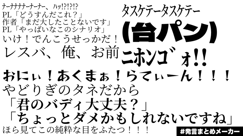 cocoacigarettt☆quiet followMEMOアノ剤3日目 発言まとめ ネタバレはないはずですが、万が一あるかもなのでぽいぴくに。愉快な職場です。 #発言まとめメーカー statementSummaryMaker Tap to full screen (size:1280x720).Repost is prohibited Let's send reactions! freqpopularsnackothersPayment processing Replies from the creator Follow creator you care about!☆quiet follow cocoacigaretttMEMOアノ剤3日目 発言まとめ ネタバレはないはずですが、万が一あるかもなのでぽいぴくに。愉快な職場です。 cocoacigaretttINFOエモクロア夏から春にかけての君へDL:CEO🐰HO1:なつさん🐧/西園寺 優麗HO2:🎤/夕紅 緋波シナリオクリア!CEOシナリオで青春吸いました 新しい関係性で良かったナ! cocoacigaretttINFOCoC「旭ばかりと思うなよ」KP/KPC:ややさん/童銅 篤深PL/PC:🎤/西秦 月雲「…ごめんね」 cocoacigaretttINFOCoC 夜半の口寄せKP/KPC:🎤/保岡 和希PL/PC:なつさん/館川 瑠乃ENDAにて。がはは!!!!!!!!!!!!!!!!!!!この二人でしか見えない景色。 cocoacigaretttINFOCoC 静謐たる光陰旅行KP/KPC:なつさん/館川 瑠乃PL/PC:🎤/保岡 和希両生還エンド!いやぁ、まさかの結末にPLびっくり。楽しかった!保岡くん、どうする????? cocoacigaretttDOODLE㌥ 自陣FA 通過中のらくがきなので念の為現行・未通過❌にしときます。せいるさんは大丈夫です。本日最終日!!!!!!!!!!!!!!!!!!!!!!!!!!!! related works rosozokuMEMOロソ族(フィー、タウ、ガンマ、キー)への愛という名の劣情。一応閲覧注意。ミューちゃんはアイドルだから……そういう対象としては見れなかったよ……←でもミューちゃんも大好きですかわいい。PW:何を見ても自己責任ですがいいですね?(yes/no) sasameki_orgSPOILERDDG 発言まとめ #発言まとめメーカー kuri_bunri_ncSPOILERえっこくネタバレあり 未通過× うぱの陣はいいよご愉快PLPC発言まとめです ネタバレ配慮一切なしです#発言まとめメーカー pb8_trpg8_SPOILER夕凪の調べ、ネタバレ有海瑠火(とPL発言)中心好きなとこ#発言まとめメーカー #我楽多卓 ❤️わかにゃん❤️SPOILERねこにほ96話感想⚠️ネタバレ注意 ryuzaki_trpgSPOILER【シビュラ】現行未通過❌/自陣⭕自陣ネタ!#発言まとめメーカー ☪︎つき☪︎MEMO※「あのね、」ネタバレあり#発言まとめメーカー礼雅と莱薇の発言をまとめちゃった、えへ 2 いろはSPOILER #発言まとめメーカー さんをお借りしてJSQ3月号ワールドトリガーの感想をまとめました 78ichDONEワンディスまとめ⑤ どれみちゃん編 recommended works ブロンSPOILERこれは人間師通過中のぼくの脳内の発言まとめネタバレしかない現行未通過☓ 自陣も☓#発言まとめメーカー※メアリーはうちのPCの妹っすね 2 ❤️わかにゃん❤️DOODLEまとめ macharate_TRPGSPOILER【商・不幸堂】げんみ❌完走記念に#発言まとめメーカー で作ってみました^^主にセリフとかPLが思った事etc…追加等のお言葉あったら更新します(*^^*) ❤️わかにゃん❤️MEMO akamoji_muisikiSPOILER「因って件の如し」現行未通過×こないだの発言まとめです めっちゃネタバレそしてPCがクズです黒がPL発言、赤がPC発言、オレンジがKPです#発言まとめメーカー Shiopanda_0209SPOILER比良坂ももは様作『Call of sacabambaspis』の発言まとめです gaohiruDOODLE『BLOODWOFLーO2』現行未通過❌ウルオズHO4 印象に残っている語録#発言まとめメーカー を使いました 瑞花@潜在株主SPOILER剣持デスゲーム初見の限界オタクによる発言まとめパスワード:最後にタヒんだライバーの誕生日数字4桁 chibijokerSPOILERどとわん自陣。ネタバレ有。ポエム。暗い。どとわん現行未通過NG。pass:シナリオ名「.〇〇〇」(大文字) 759