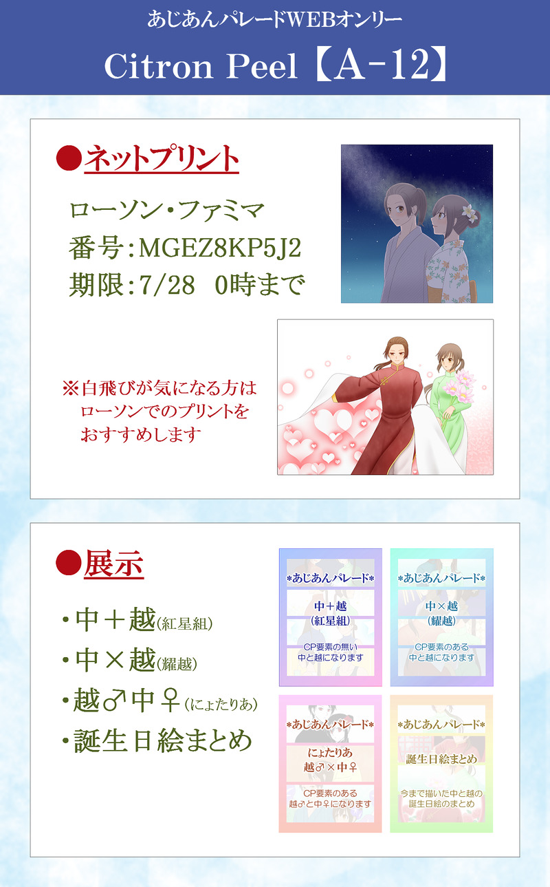 ymym601☆quiet followMENUあじあんパレードWEBオンリーお疲れ様でした!ネップリの番号は1P目、どのようにプリントされるかは2P目と3P目をご確認ください。 show all(+2 images) Tap to full screen (size:1458x2350).Repost is prohibited Let's send reactions! freqpopularsnackothersPayment processing Replies from the creator Follow creator you care about!☆quiet follow ymym601MENUあじあんパレードWEBオンリーお疲れ様でした!ネップリの番号は1P目、どのようにプリントされるかは2P目と3P目をご確認ください。 3 ymym601PASTあじあんパレードWEBオンリー開催おめでとうございます!こちらは今まで描いたにーにと越っちゃんの誕生日絵のまとめになります。絵は古い順に並んでいます。 27 ymym601PASTあじあんパレードWEBオンリー開催おめでとうございます!こちらはにょたりあの越っくんとねーねのCP絵になります。絵は古い順に並んでいます。 4 ymym601PASTあじあんパレードWEBオンリー開催おめでとうございます!こちらはにーにと越っちゃんのCP絵になります。絵は古い順に並んでいます。 18 ymym601PASTあじあんパレードWEBオンリー開催おめでとうございます!こちらはCP要素の無いにーにと越っちゃんの絵になります。絵は古い順に並んでいます。 22 ymym601DONE大遅刻だけど湾ちゃんお誕生日おめでとうございました!全体図は2P目にて 2 recommended works vtakiiiiiDOODLEバンユキ騎乗位いつか完成させる 2 38カーニバルDOODLE椎名とか天城とか 9 odamatsunosukeDONE 傘稀☂️DONEホシ月夜記─陽園荘の少女─ 2 yuuutu00000SPOILERDOGMAネタバレあり現行未通過❌️初日の大暴れ大丈夫ならyes HaruWind_shinoMEMO 2 Crust_sugarDOODLEREOくん ほや🐟DOODLE女の子 のつもりだけどだんだん女の子に見えなくなってきた 2 はるつきDOODLEちーとど。ぬるいR18あり。⚠なんちゃってドムサブユニバース。よくわかってないまま書きました許して。⚠Subちぱ✕domあおいちゃん。何をいってるかわからないでしょう、私もです。パス18↑?(y/n) 4674