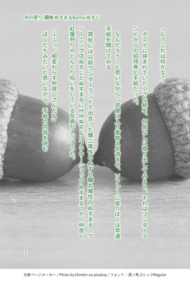 dyan1329☆quiet followDONEワンダーランドから、蘭丸と嶺二のところに秋の便りが届いた話 show all(+3 images) Tap to full screen (size:630x928).Repost is prohibited Let's send reactions! freqpopularsnackothersPayment processing Replies from the creator Follow creator you care about!☆quiet follow dyan1329DONEワンダーランドから、蘭丸と嶺二のところに秋の便りが届いた話 4 dyan1329MEMOお正月、羽子板で羽根つき遊びをする蘭嶺とぬす 2 dyan1329MEMOくじぬすとの遭遇ワンダーランドで迷子になったくじぬすを相棒のくじぬすまるの元まで送る警官ぬすまるの話です 4 dyan1329MEMOお題ガチヤ帰り道カレーの匂いに食べたくなったぬすまるに、クリーニング店でぬすじがカレーを作って待っていてくれた話 dyan1329MEMOクリーニング店のぬすじが過労で倒れて、代わりにぬすまるがお店を手伝う話です 3 dyan1329MEMO・診断で出たぬすじにオムライスを作ってあげている蘭丸です!(内緒の夜食)・その後に、結局嶺二とぬすまるに見つかってしまう蘭丸です(約束)(ぬスじが寝る前に蘭丸の作ったオムライスを食べていいか聞いたところ、蘭丸の許可が出ました。#shindanmakerhttps://t.co/drOUiXv6sR) 3 recommended works tanuko_PDONE「気配でお前だって分かるんだよ」明けましておめでとうございます今年もよろしくお願いします! aosabikinakoTRAINING貴方はハル相で『最大級の口説き文句』をお題にして140文字SSを書いてください。#shindanmakerhttps://shindanmaker.com/375517 かほる(輝海)DONEシティーハンター冴羽獠×槇村香原作以上の関係。あなたはかほるさんちのRで【疲れてるの? / 寝かせてやれない】をお題にして140字SSを書いてください。#shindanmakerhttps://shindanmaker.com/780366そんなこと聞いたら、逆に火がついちゃうよ!😂「疲れてるの?」 シャワーを浴び、ベッドで一寝入りしていたら、香に声をかけられた。日中はそれなりに動いたから、もっこりに備えて体力の回復をしていたところだ。「ばぁか」 俺は香の手を掴み、引き寄せた。倒れ込んでくる香の身体を抱き止めて、ベッドへ組み敷く。悪いが今夜も、寝かせてやれない。 了 151 みみみTRAINING貴方は萌えが足りないと感じたら『うたた寝している相手に自分の上着をかけてあげるみみみのラーアス』をかいてみましょう。幸せにしてあげてください。#shindanmakerhttps://shindanmaker.com/524738 3 SasameDONE貴方は細雪んちの獠香で『誰にも渡さない』をお題にして140文字SSを書いてください。#shindanmaker😑😑😑 CKanashiiTRAINING年齢の件、なんやかんや2人ではオープンに話して欲しいの気持ちです。誕生日後の話、ネタバレあります。貴方はアロルクで『そうだっけ?覚えてないや』をお題にして140文字SSを書いてください。#shindanmakerhttps://shindanmaker.com/587150 2 kagajyoh86DONE久しぶりに会った実弥にガツガツやられる義勇。(R18)流麗2の新刊です。6月12日流麗2 D08「アルチスト」で参加します。6月27日さねぎゆオンリーにも参加致します。書店 虎さん(https://ec.toranoana.jp/joshi_r/ec/item/040030911902/)フロマージュさん、まんだらけさん 8 aeosxDONE結婚してるよ貴方はなごしのカイキサで『日常崩壊寸前』をお題にして140文字SSを書いてください。#shindanmakerhttps://shindanmaker.com/375517 panpa_inoDONE宇伊ワンドロ過去作。全4作。全年齢。全てIQ3です。なんでも許せる方のみお願いします。 11