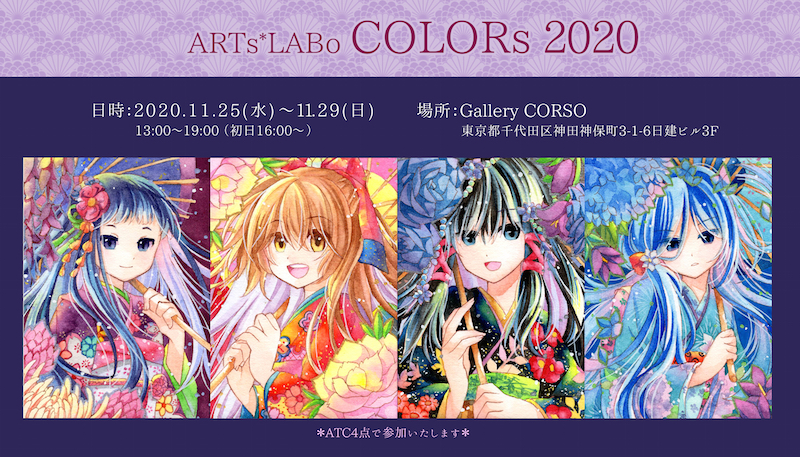 ARTs*LABoさん主催の「COLORs 2020」にATC4点にて参加させていただきます。