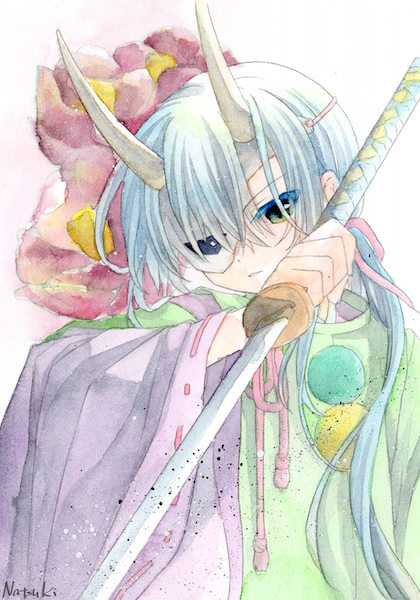 人物部分は水彩で色をつける前に先に絵墨でザックリ影色をつけていたのですが(4枚目)、この単色の状態の方がより和風感はあるかも…??