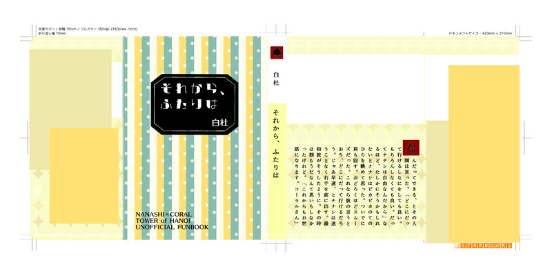 玄杜。☆quiet followTRAININGメディバンペイントの練習がてら手元の文庫本のデザインを模写?してみただけのブツ だいたいわか…らない…お絵かきソフト難しい… でもまあこれで万が一の時はよろしくねメディバンペイントくん… Tap to full screen (size:5787x2894).Repost is prohibited Let's send reactions! freqpopularsnackothersPayment processing Replies from the creator Follow creator you care about!☆quiet follow 玄杜。MOURNING仮題は「しぬほどいい」でした。そんな感じの直接的なナナシ×コーラルです。はっぴー7月5日。 4006 玄杜。MOURNING※直接的に死を取り扱っていますいつか呟いた「コーラルさんの親の葬式に付き添ったナナシ」の帰り道の短文です。コーラルさんがけっこうドライだし両親との疎遠具合もかなり遠め、ナナシも不謹慎なので注意。あとはナナシの生まれを大捏造しました。ナナシT1でナナシがコーラルさんの人生の一番近いところを生きていたらこんな日も来るのかなあ、っていうスケッチのような何か。 3045 玄杜。REHABILITLの影響過多の三次創作吸血鬼パロ。🦇になれる吸血鬼の💻とクロヒョウになれる眷属の7️⃣のほぼ🦇と🐈⬛の食べる食べられるの話。吸血鬼と眷属の食事周りを独自解釈しています。食欲を他の欲と混ぜる描写や鳥や名も無き肉が露骨に食べられる描写含。 5400 玄杜。REHABILIナナシ×コーラル。R18短文。HANOIの機能を盛大に捏造しています。ちょっと前TLで騒いだメンテのついでに生殖器官パーツを取り替える話です。なので露骨にそっちの描写も含む上にギャグちっく。よろしければ雑務用のストレス値を入力してください。 6484 玄杜。MAIKINGおおめに見繕ってR15くらいの文。ご無沙汰でしたい気分のコーラルさんとナナシのナナコー、暗転手前くらいまで。似たような話が多いのは、こいつこういうの好きだなって諦めていただければ幸い。〆切のある文書いてると別の味も書きたくなるのはバグなのか仕様なのか微妙なところ。 4965 玄杜。REHABILI吸血鬼パロ。眷属のナナシと吸血鬼・ブラウンが深めのちゅーしてるだけの短文です。吸血鬼と眷属の生体を大捏造しています。今日はコーラルさんのお誕生日ですが全然掠りもしない内容ってどうなんでしょうね。コーラルさんにはいつまでも健やかであって欲しいしぐっすり寝癖を作って欲しい。ハレルヤ。 2548