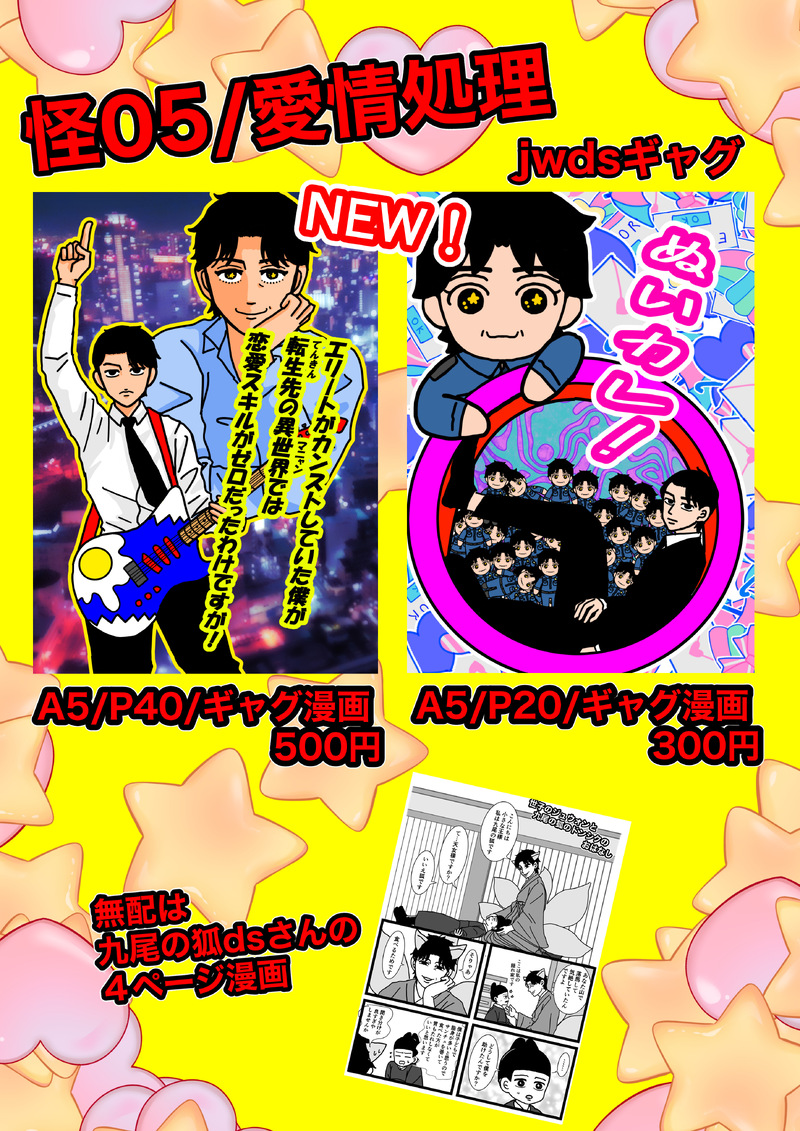 dispose_of_love☆quiet followMENUエリートがカンストしていた僕が転勤先の異世界では恋愛スキルがゼロだったわけですが!A5/P40/550円(オンイベ価格)怪物jwdsギャグ漫画ぬいカレ!A5/P20/350円(オンイベ価格)怪物jwdsギャグ漫画発送は6月30日前後になります。 show all(+8 images) Tap to full screen (size:2894x4093).Repost is prohibited Let's send reactions! freqpopularsnackothersPayment processing Replies from the creator Follow creator you care about!☆quiet follow dispose_of_loveINFOお品書きにパスワードを載せ忘れました。よろしくお願いいたします。 dispose_of_lovePASTjwds本4冊目の『愛というより執着』の再録になります。 16 dispose_of_lovePAST『D(ドンシクさんが)T(とっても大好き)ですがそれが何か?』の続きです。 8 dispose_of_lovePASTjwds本3冊目『D(ドンシクさんが)T(とっても大好き!)ですがそれが何か?』の再録です。載せきれなかったので続きます。 30 dispose_of_lovePASTjwds本2冊目の『エリート警察官の僕げ片田舎の派出所で初めて恋に落ちた相手が訳ありだった件!』の再録です。 27 dispose_of_lovePASTjwdsの本一冊目の『僕のパートナーがこんなにセクシーアジョシな訳がない!』の再録になります。 26 recommended works おやまだDOODLESweet Home재헌상욱瞳が雄弁すぎるサンウクちゃんさんと、表情だけで色々理解してそうなジェホン先生。 おやまだINFO2/27開催のオンラインイベントに参加予定します。E館:こ4ジェホサンでの参加となります☺️画像は表紙になる予定のものです。すきだねこの構図(すきです) おやまだDONEスイホde神共パロ。やりたいにきまっとる🥺 4 HXcztmDONE起こして… HXcztmDONEDon’t kingyoDOODLEキスの時jwの顔見ちゃうdsさん 2 MASAKI_NDONE怪物jwds① 6591 nao‼️ナオDONE絶景きじょ〜いで乗っかられて真っ赤になってしまうjwです🔞pass: 18↑?? (y/n) dispose_of_loveMENUさわマル新刊『愛というより執着』A5/P16/暗い漫画通販価格250円暗い話の短編漫画です。CPとしてはジュウォンシク。CP以外は、ドンシクとジフンの話、ジュウォンとヒョクの話、ドンシクとジンムクの話があります。発送は5月19日前後になります。 3