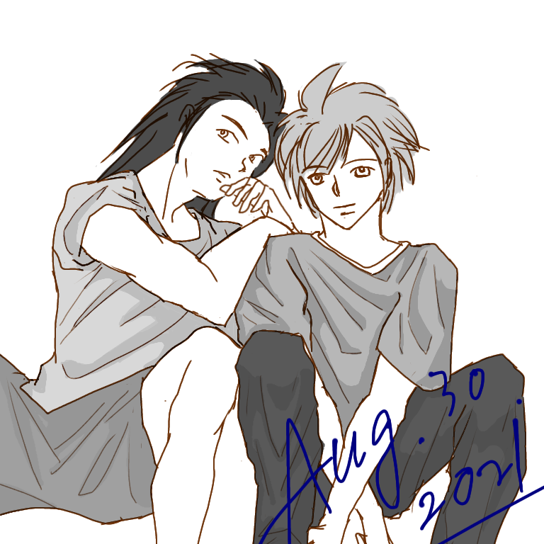 お手本写真の男子たちが同じ背格好だったのでこうなったけど、ザックスはもっと大きく描きたかったなぁ。