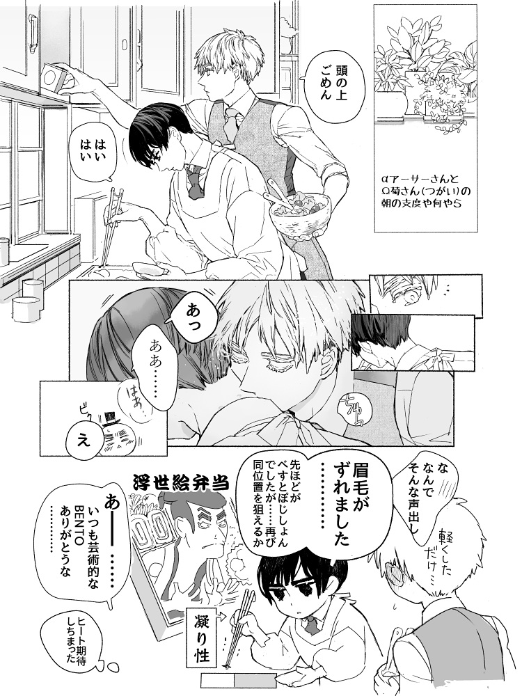 まったくどうでもいい話ですがこの二人はオメガバース設定αΩの番で既婚というベッタベタに盛り込まれた円満ご夫夫な二人で、昨年本編を描こうとして中断し、ようやくこの秋から改めて描こうとしているのですが本編を描く前に端切れをちょこちょこ描いているという(我慢できなくて……)そんなのものの一環です