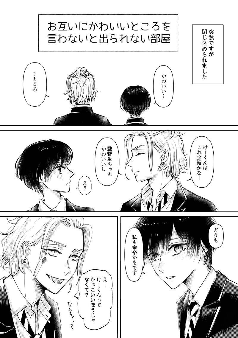 nyao_twst☆quiet followPAST出られない部屋のケイ監♀2022.12.11に発行されたてんさんの御本に寄稿させていただいた漫画です。ゲストに呼んでいただきありがとうございました!※監督生顔あり喋る show all(+7 images) Tap to full screen (size:1748x2481).Repost is prohibited Let's send reactions! freqpopularsnackothersPayment processing Replies from the creator Follow creator you care about!☆quiet follow nyao_twstDONEケイ監♀(顔あり喋る)どうしても監ちゃんにお酒飲ませたかったので現パロ大学生くらいです!!!バンドの打ち上げ後の帰りで両片思いかな?って感じのゆるい設定です!!!背景や服の柄やアクセなどはログアウトしました!!!なんでも大丈夫って人だけ見てください……長々作業してたのでもう何がなんだかわからんのでスタンプ押してもらえたら喜びます…(瀕死) 7 nyao_twstTRAININGケイ監♀キス練心を無にすれば自ずと正しい線が見えてくるはず…(適当) 4 nyao_twstTRAININGケイ監♀(顔あり喋る)キス練 2 nyao_twstDOODLEイチャイチャしない漫画を描いてて疲れたので発作が起きて描いたらくがきラフケ監ちゃんただキスしてるだけ nyao_twstPAST出られない部屋のケイ監♀2022.12.11に発行されたてんさんの御本に寄稿させていただいた漫画です。ゲストに呼んでいただきありがとうございました!※監督生顔あり喋る 8 nyao_twstREHABILIケイ監♀(顔あり喋る)リハビリ#twstプラス recommended works 未虎助DONE山も落ちまない 2 まめこあけびPROGRESSラギ監えちち漫画がもうちょい続きます後日談?ネーム的には別に前回の読まなくても冒頭以外読める筈年齢制限付けなきゃこらかんわ!的なのはえちち漫画と同じリストにて進捗上げていきますので、見てくださる方がいたら嬉しいです まめこあけびPROGRESSポン・デ・サバナ🍩腕章を描き忘れてることに気付いたので、明日なりなんなり、ちゃんと描き忘れないように……忘れてこのまま印刷されないことを祈ります!!!! もちごめDONE自称人間と時を超えるジェラシー 9 twst64546382DONE「豆イベのちっちゃい小エビ②」オクタ監♀(顔ある。しゃべる)小エビへの好感度がカンストしているオクタのマンガ。完結! #twstプラス #twst夢 sagara_kn8DONEジャミ監♀︎低気圧で頭が痛い監にそっと寄り添う🐍先輩。#twstプラス ラストDOODLEえrラクガキにリクエストいただいた前半のものです!ありがとうございました! ymmsr_lkDOODLE⚠️ 弊社の女監督生🌸居ます。ごはーん!#twstプラス #twst夢 レオ監🦁🌸 cyacyacyacyakiDOODLEN