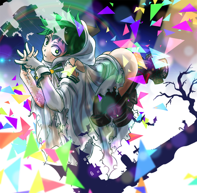 ■公式のハロウィンGhost出久でなくて、そのコスプレをしたデク という事で。デクなのでヒーロースーツ一部着用。右手の傷が私の性癖だと判明